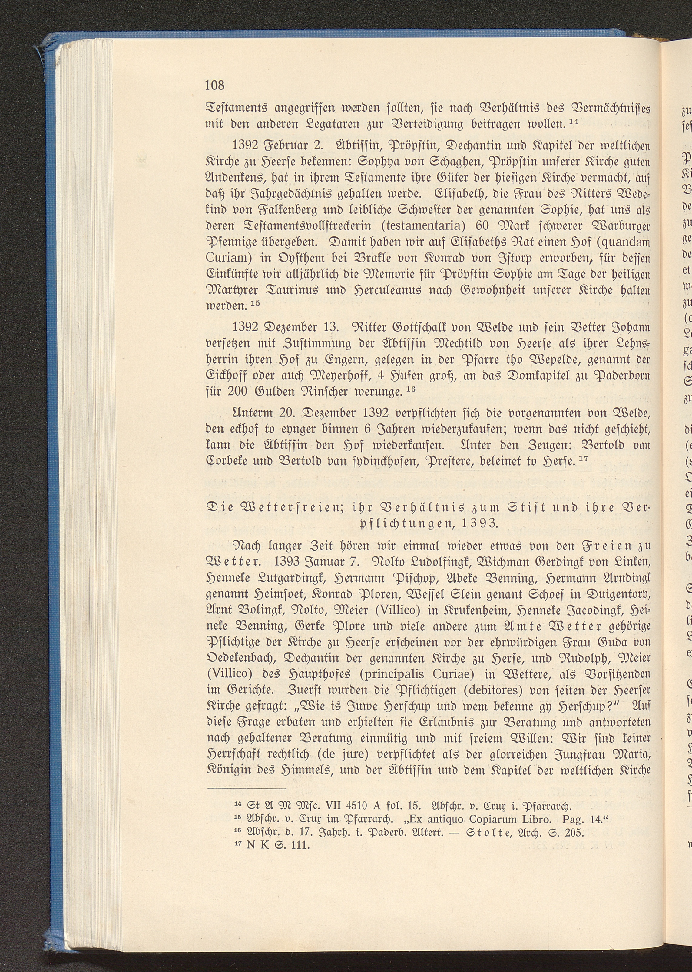 Die Wetterfreien, ihr Verhältnis zum Stift und ihre Verpflichtungen, 1393.