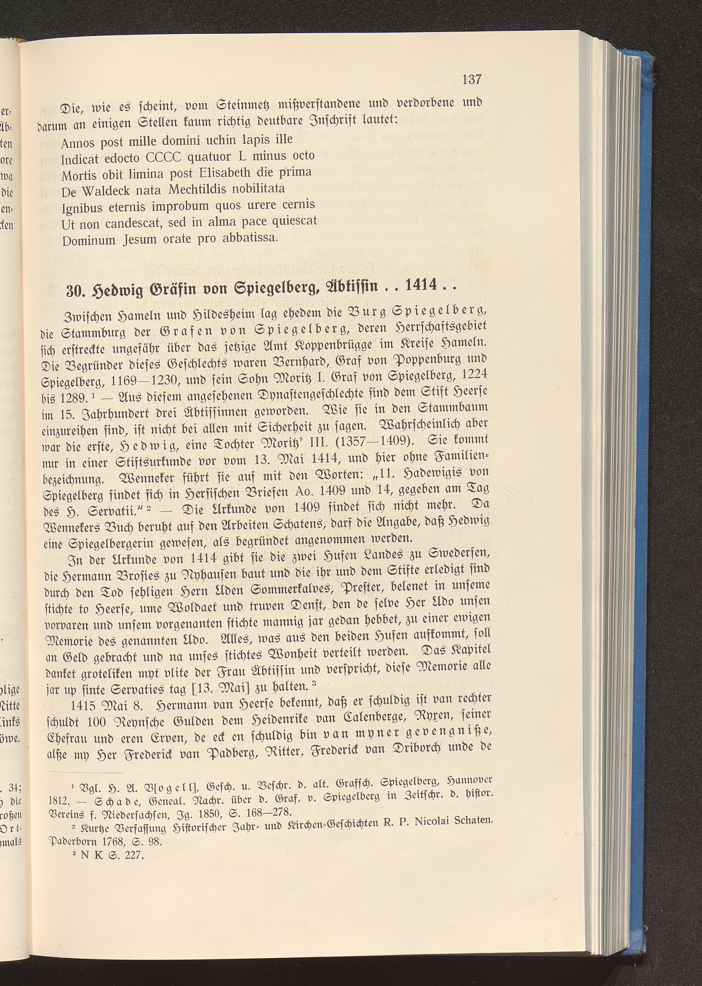 30. Hedwig Gräfin von Spiegelberg, Äbtissin. 1414.