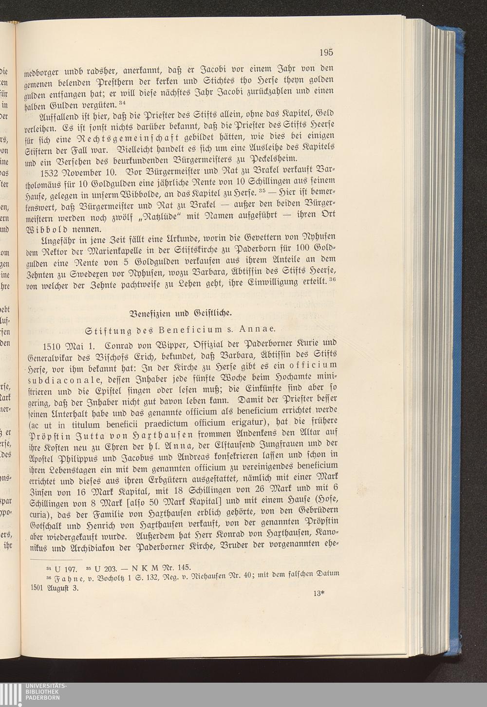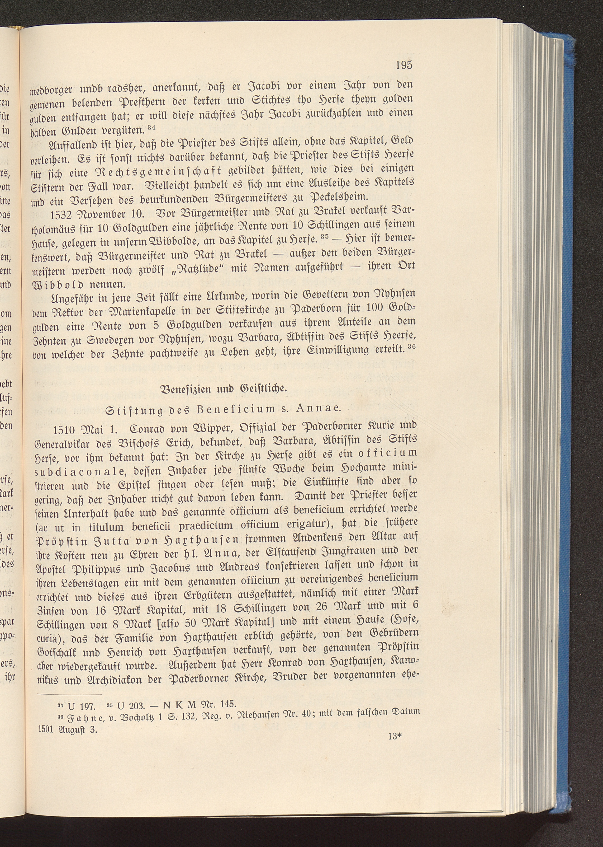 Benefizien und Geistliche. Stiftung des Beneficium s. Annae.