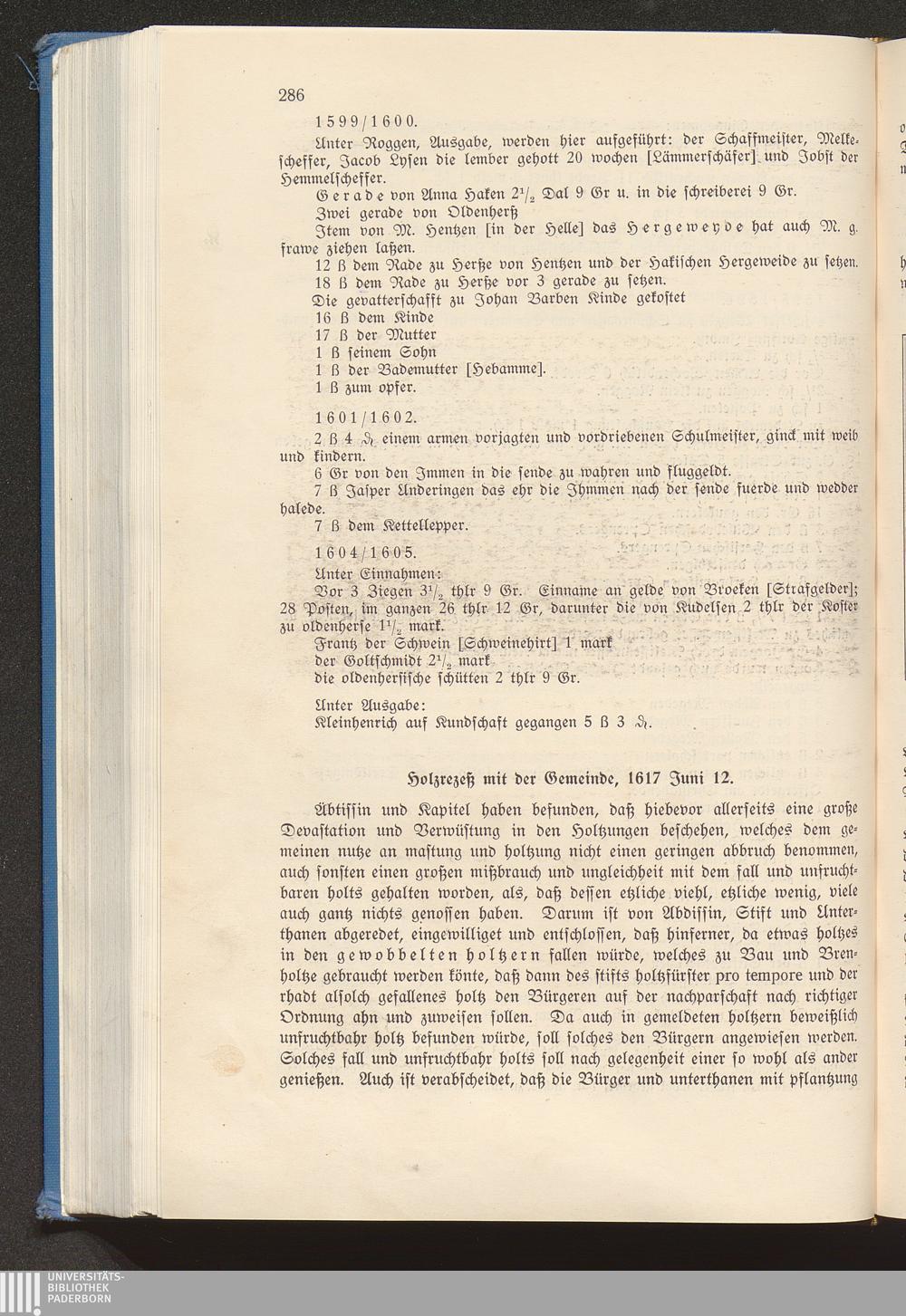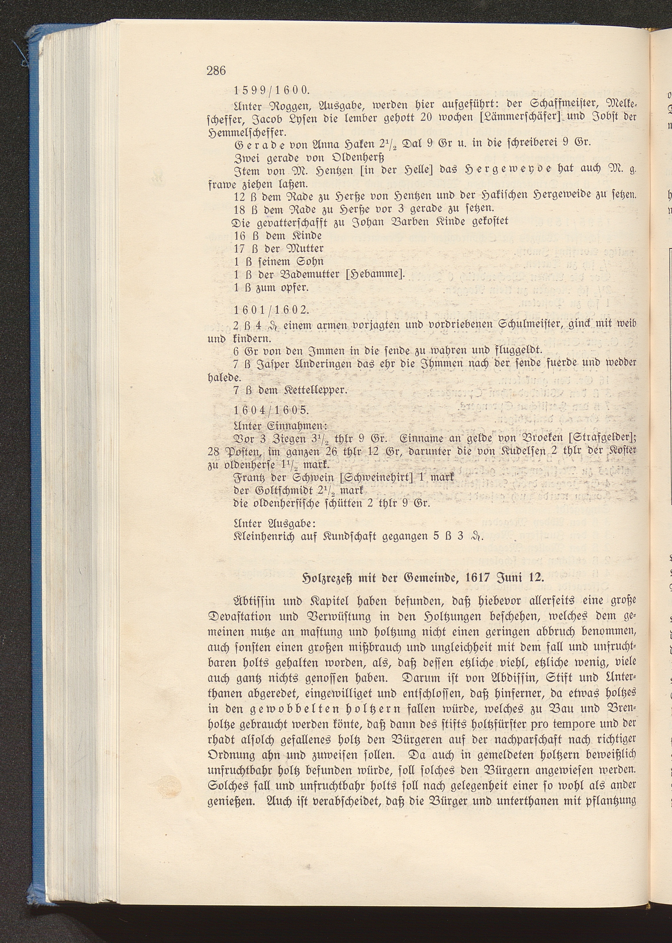 Holzrezeß mit der Gemeinde, 1617 Juni 12.