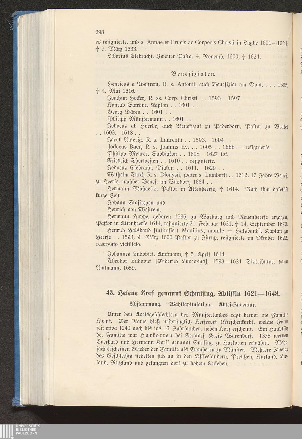 43. Helene Korf genannt Schmising, Äbtissin 1621-1648.