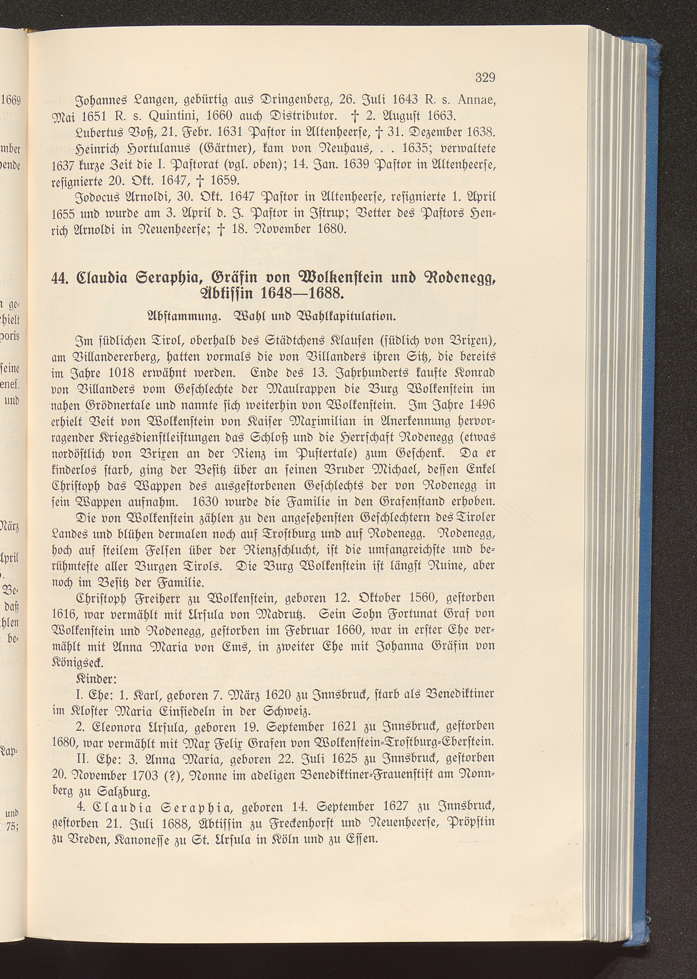 44. Claudia Seraphia, Gräfin von Wolkenstein und Rodenegg, Äbtissin 1648-1688.