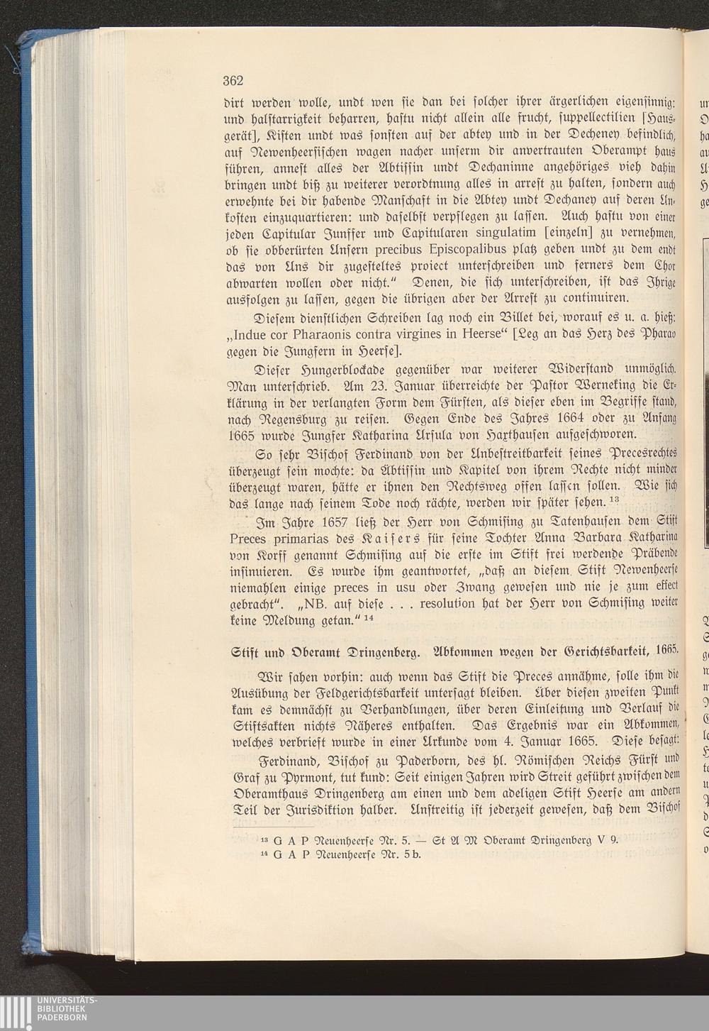 Stift und Oberamt Dringenberg. Abkommen wegen der Gerichtsbarkeit, 1665.