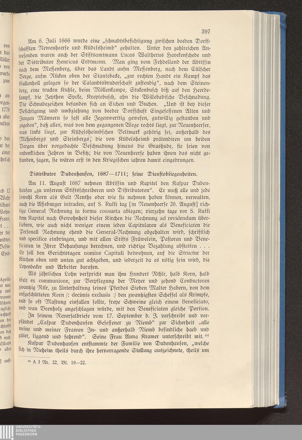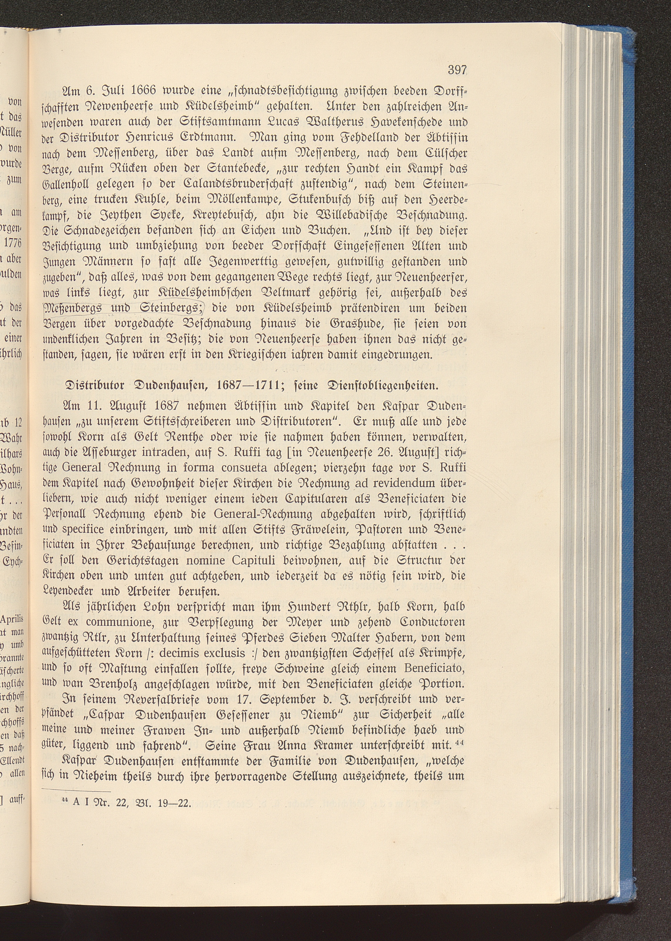 Distributor Dudenhausen, 1687-1711; seine Dienstobliegenheiten.
