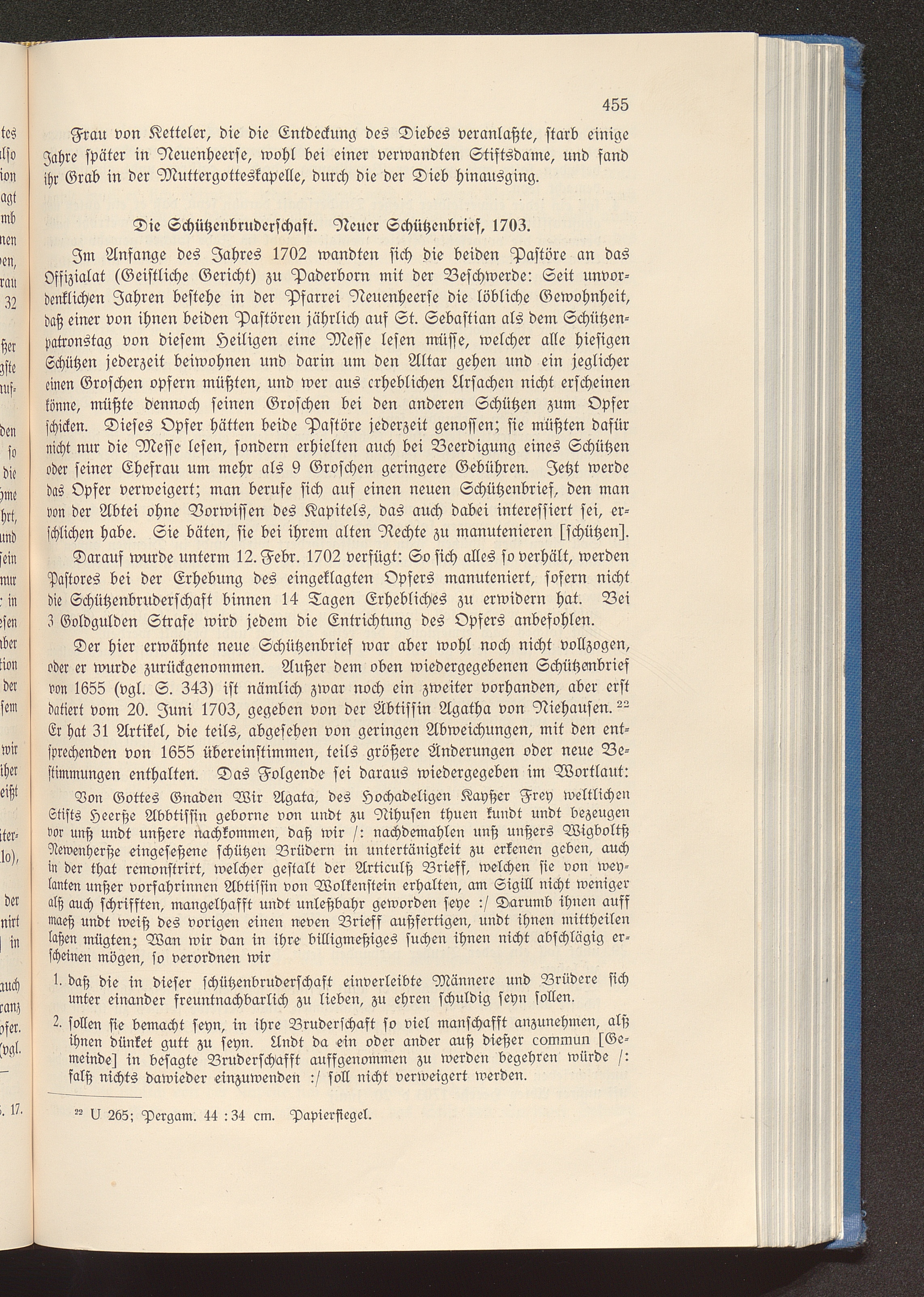 Die Schützenbruderschaft. Neuer Schützenbrief, 1703.