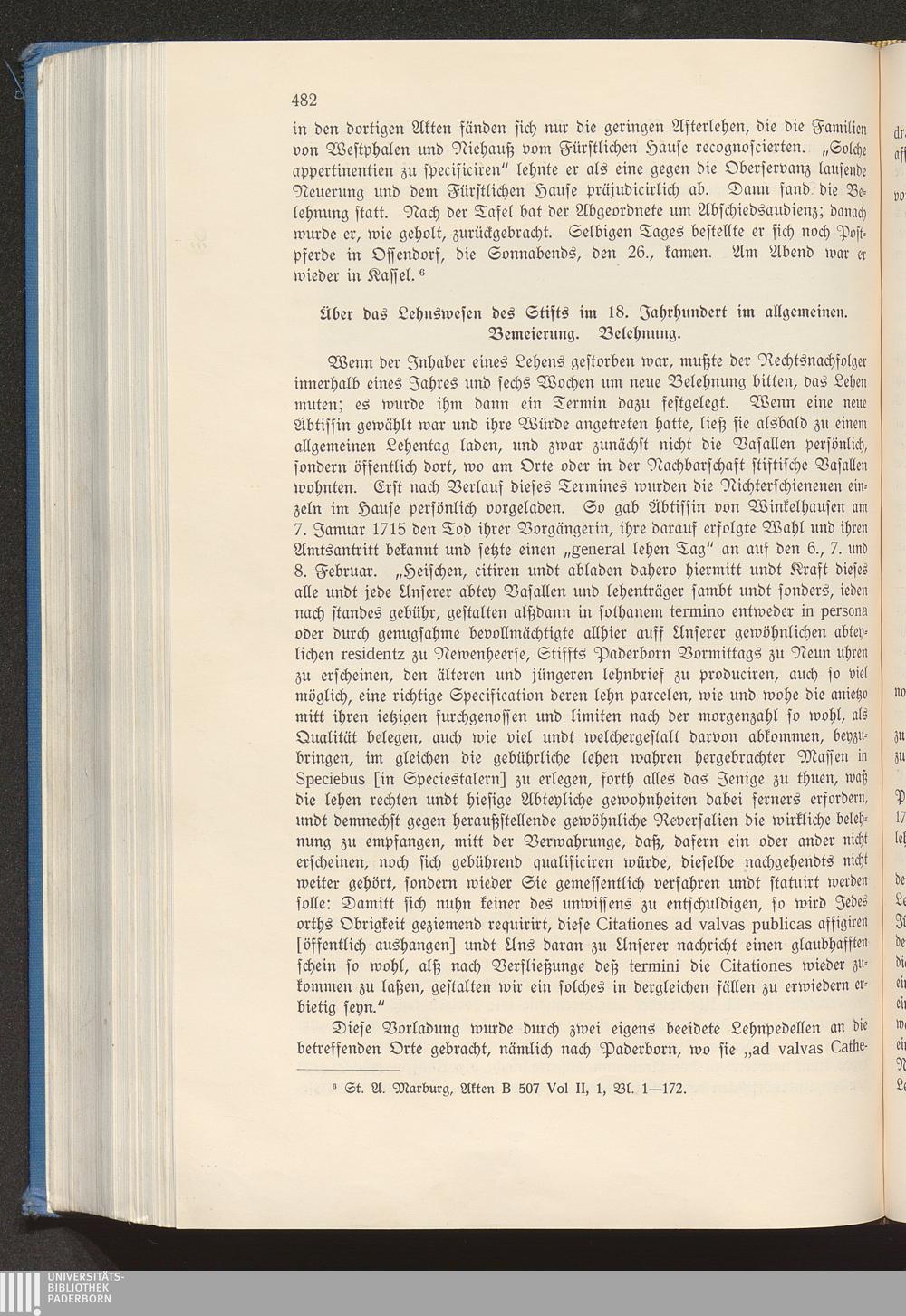 Über das Lehnswesen des Stifts im 18. Jahrhundert im allgemeinen. Bemeierung. Be[...]