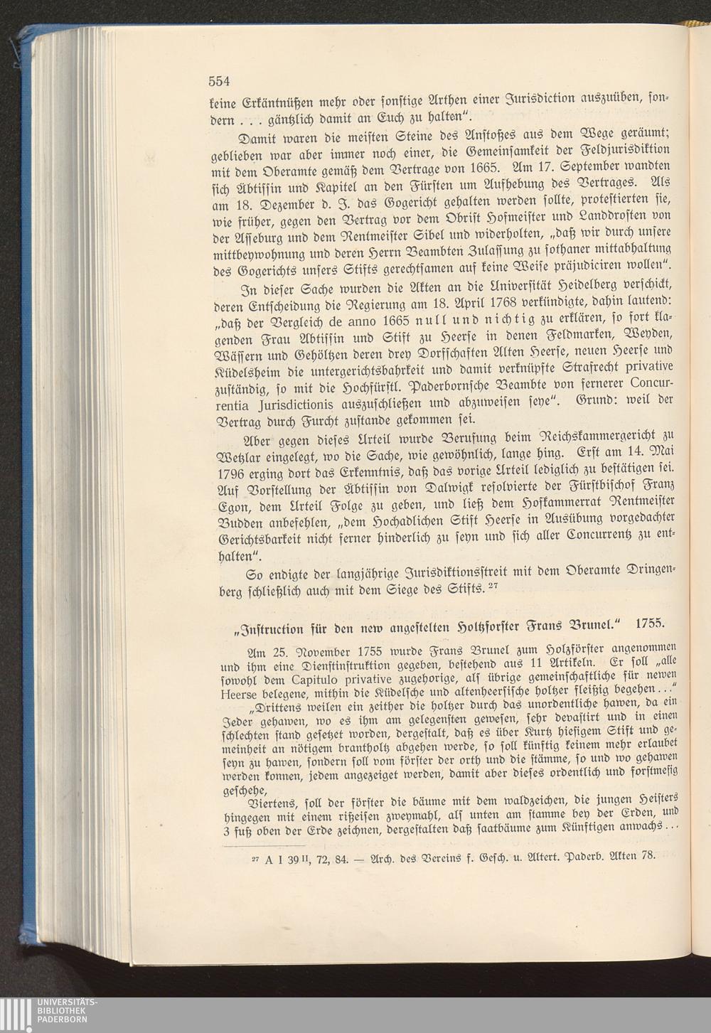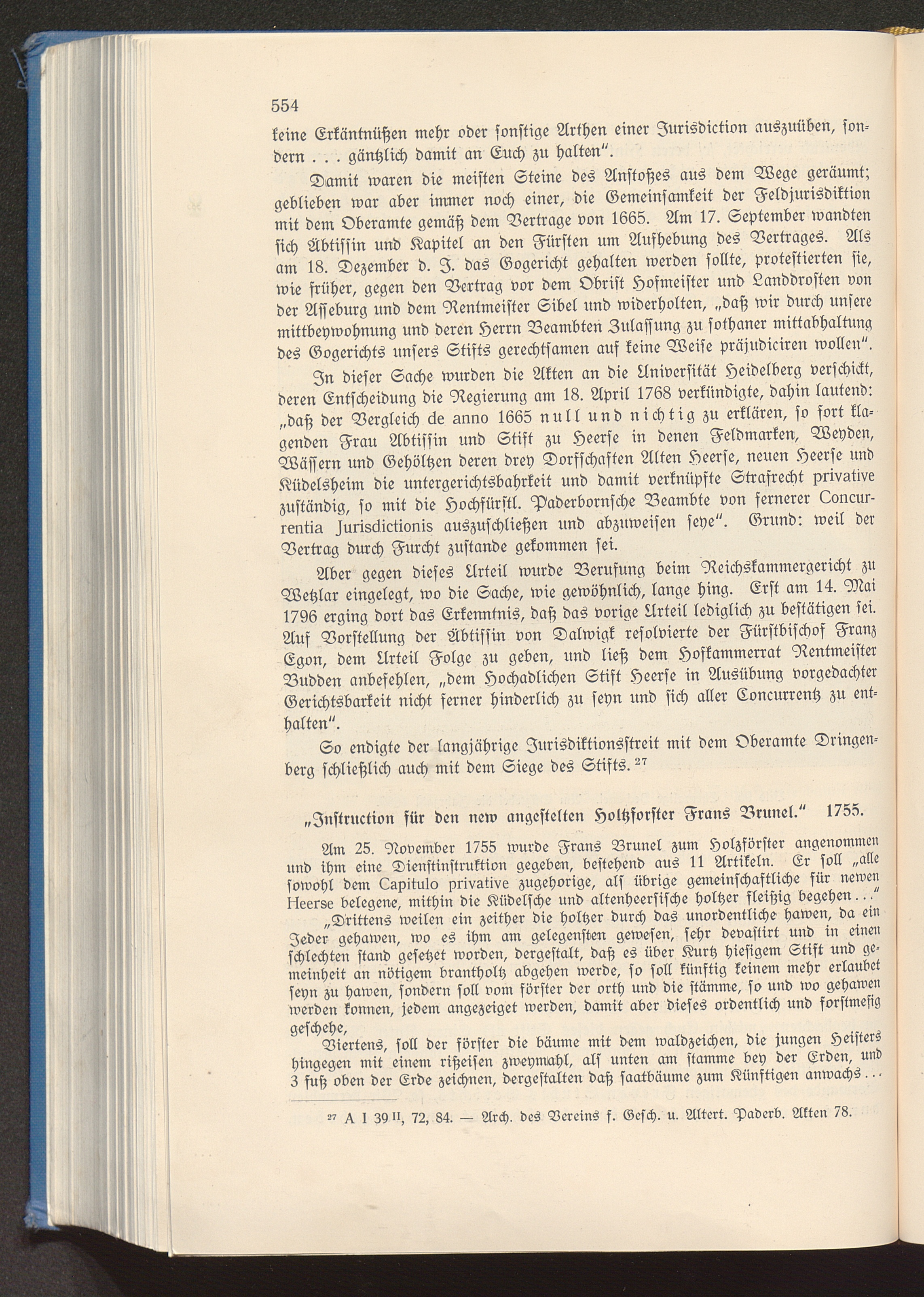 "Instruction für den neu angestellten Holzförster Franz Brunel." 1755.