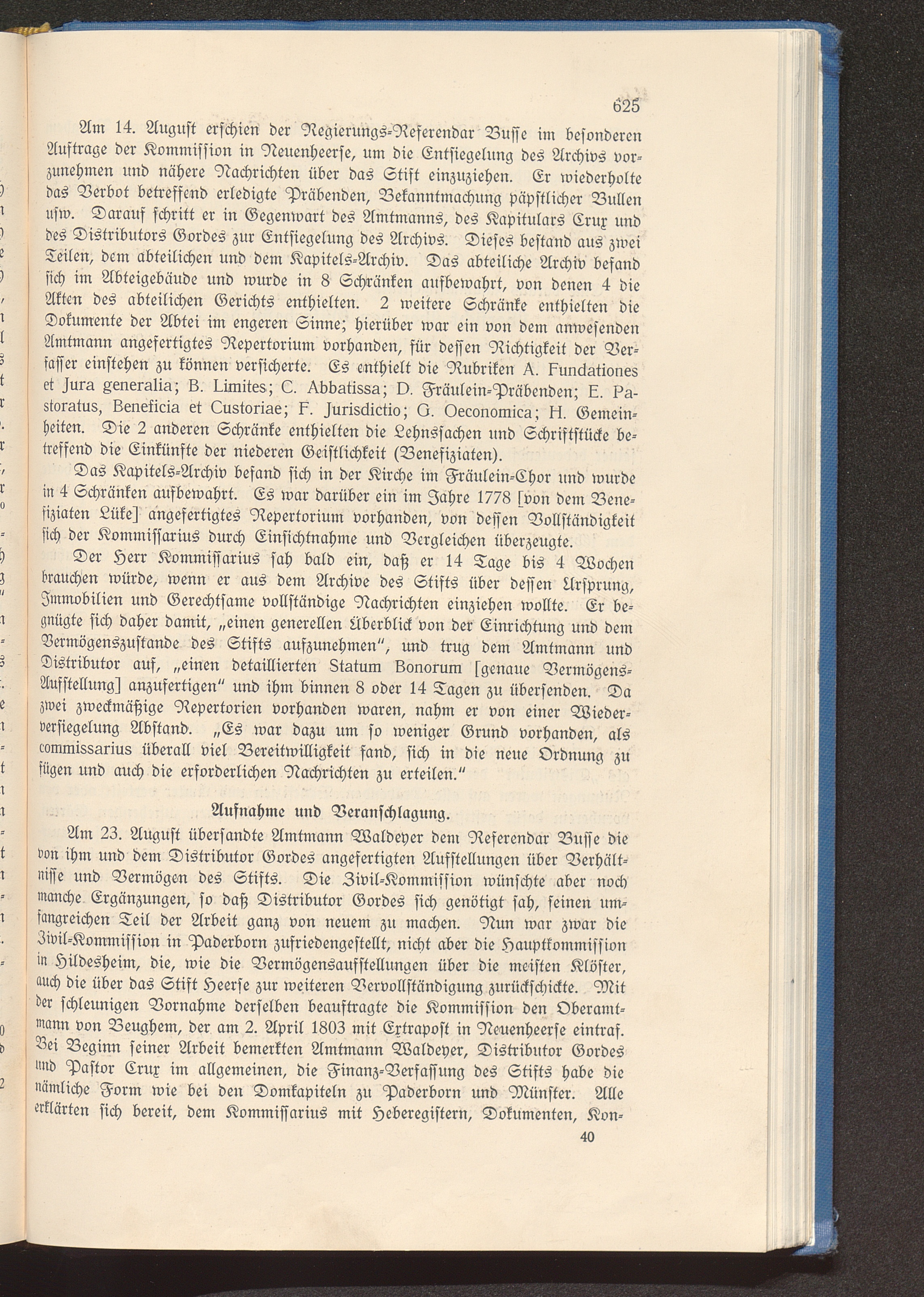 Aufnahme und Veranschlagung.