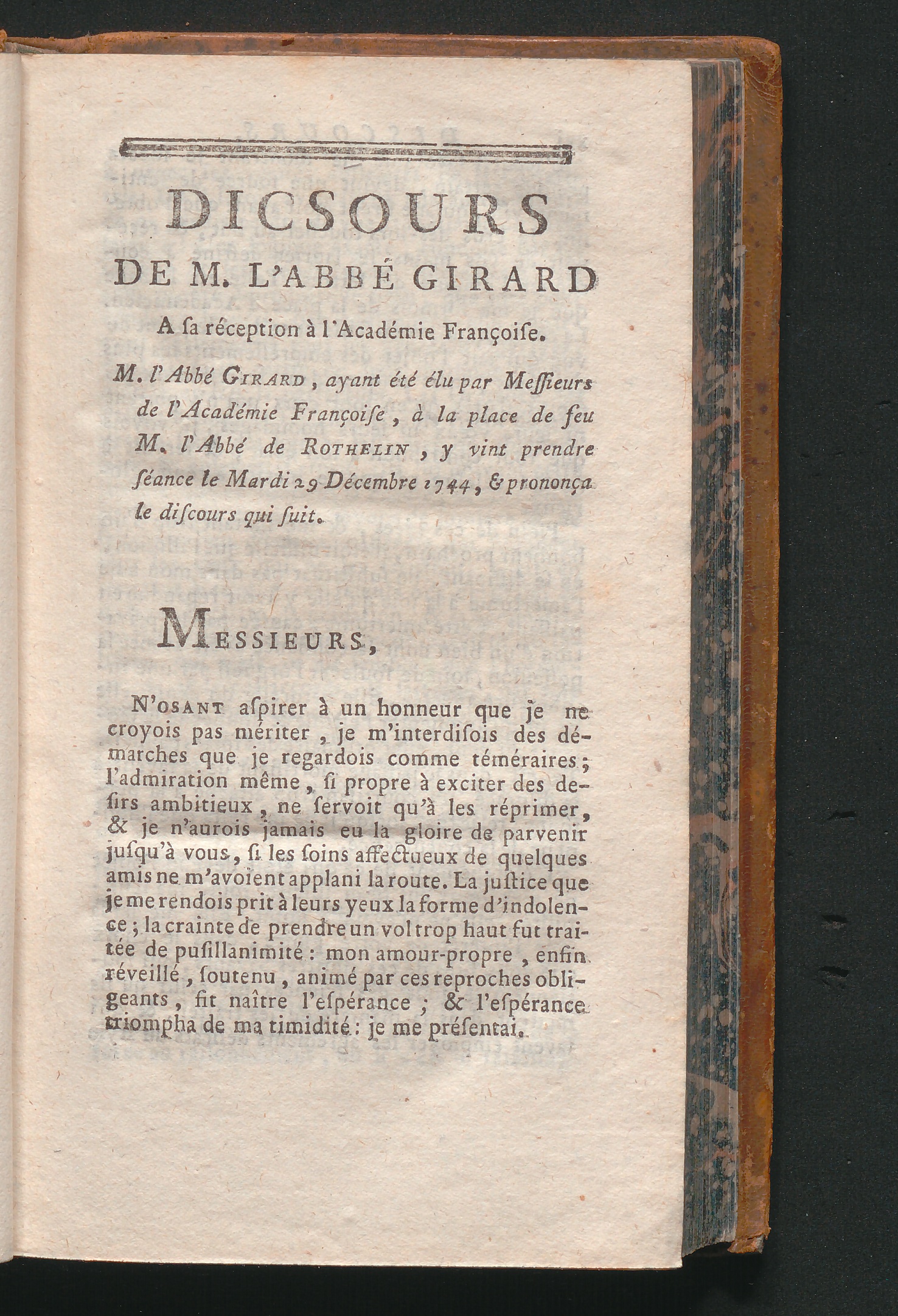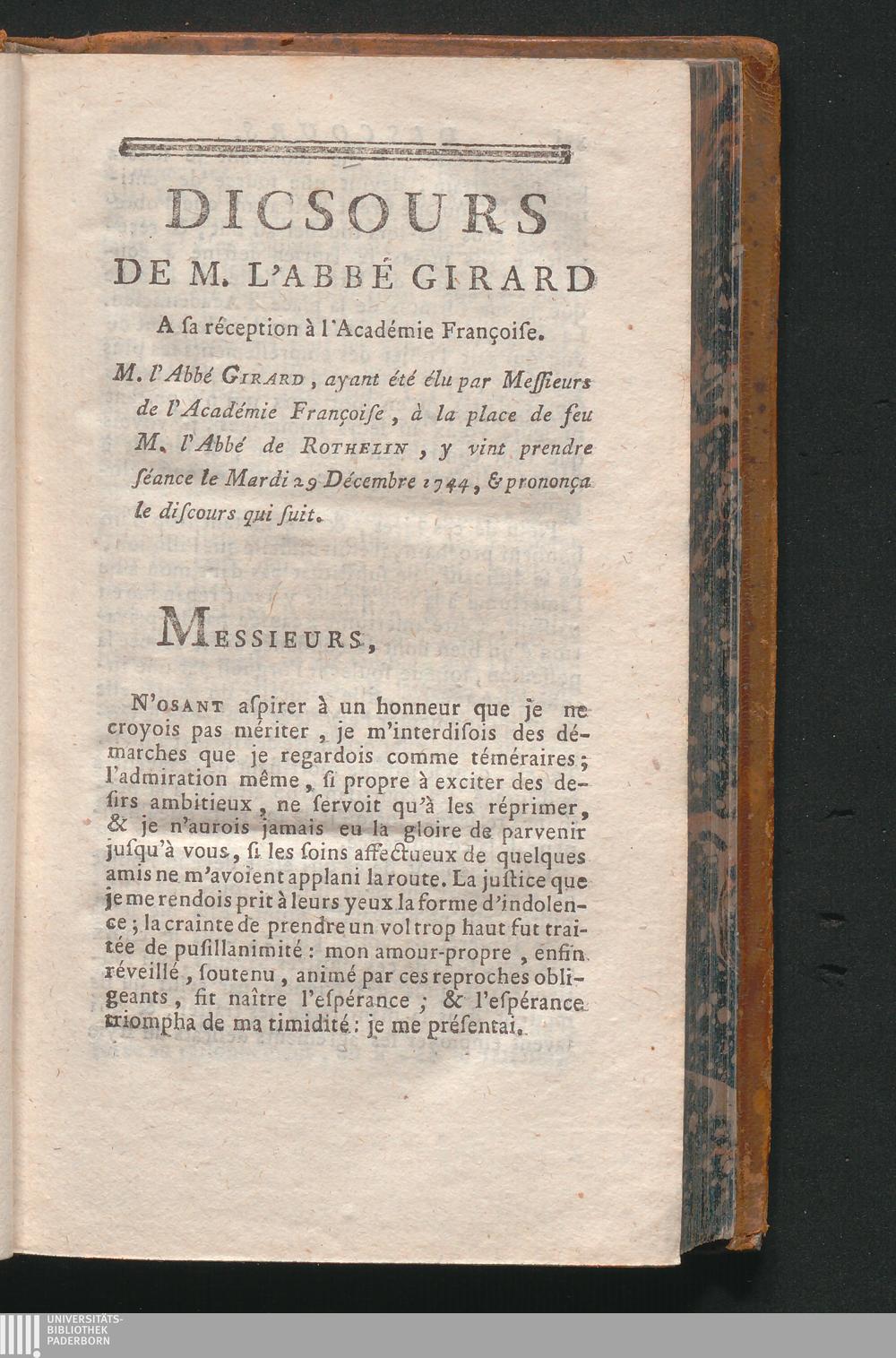 Discours De M. L'Abbé Girard A sa reception à l'Academie Francoise.
