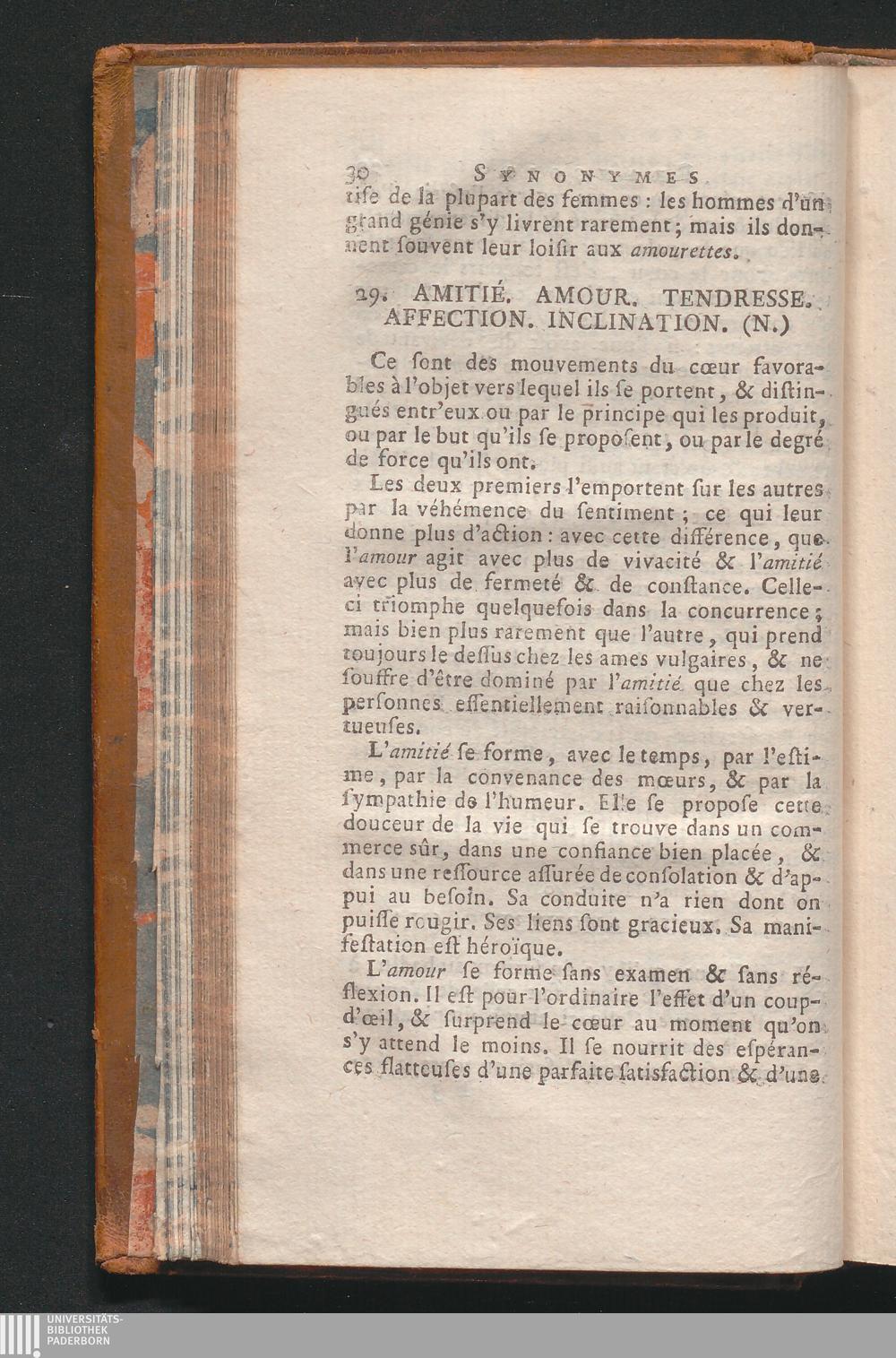 29. Amitié. Amour. Tendresse. Affection. Inclnation. (N.)