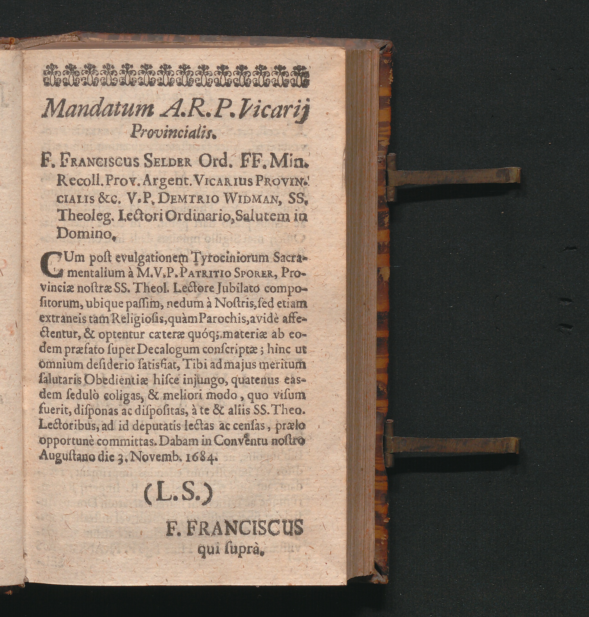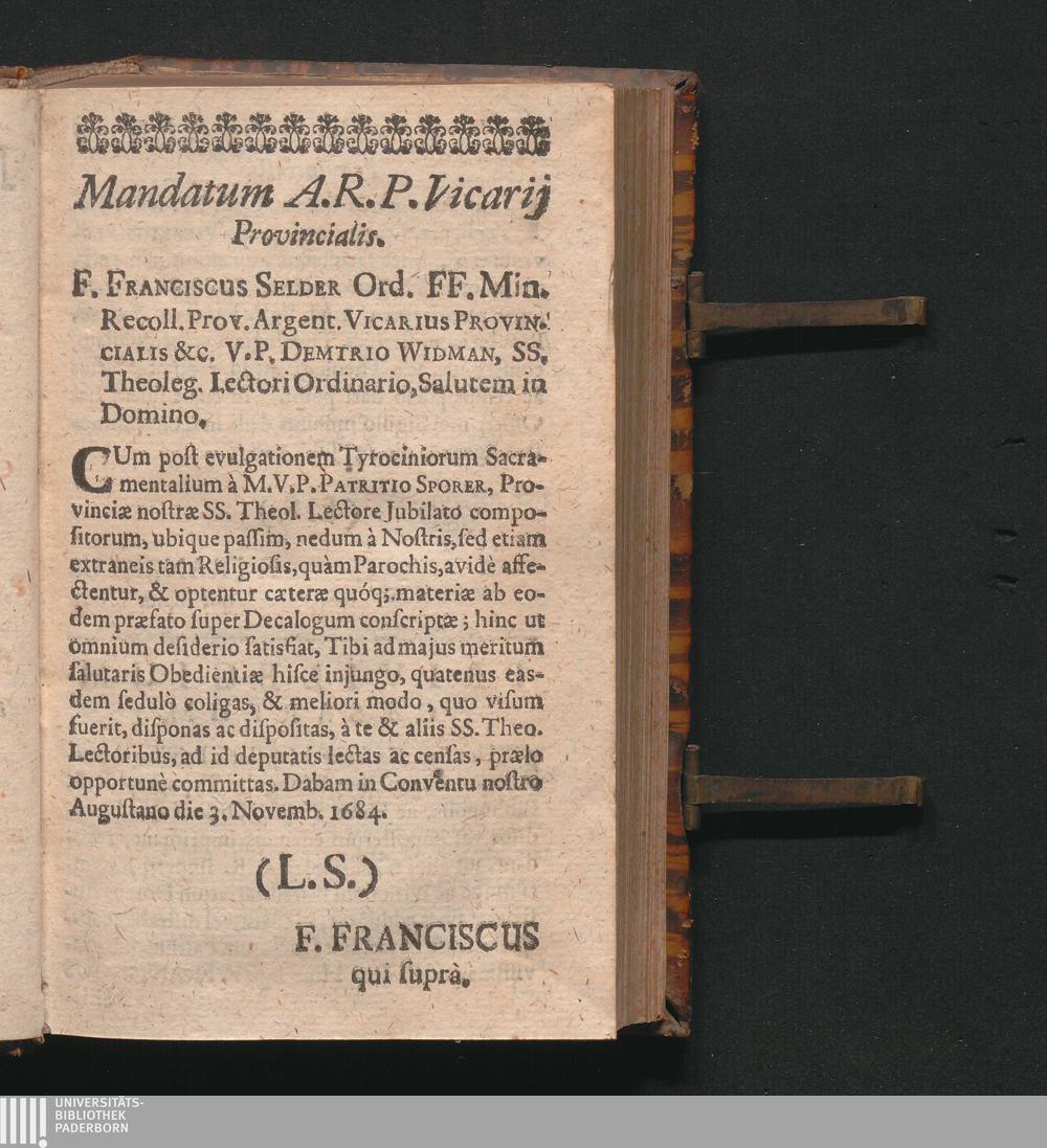 Mandatum A. R. P. Vicarij Provincialis.