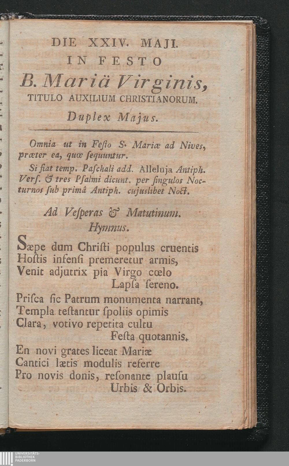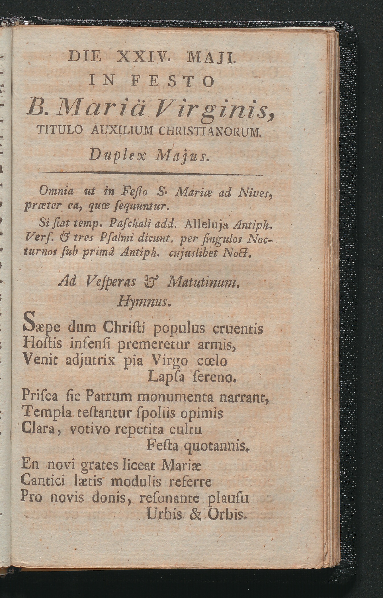 Die XXIV. Maji. In Festo B. Mariä Virginis, Titulo Auxilium Christianorum. Duplex[...]