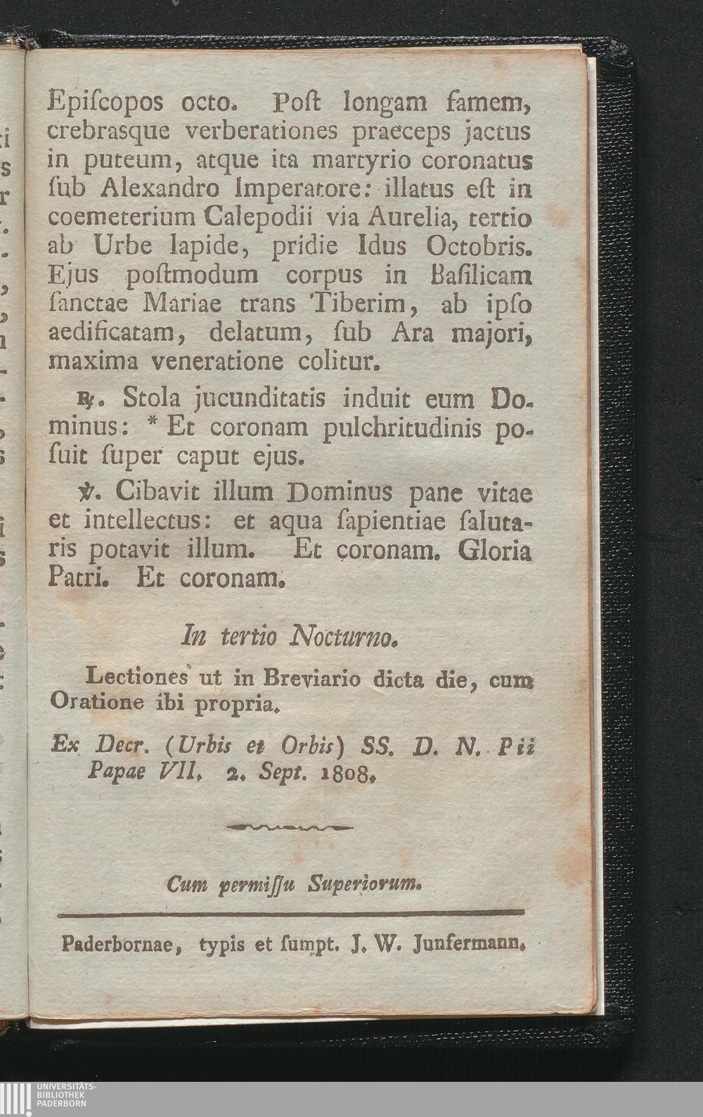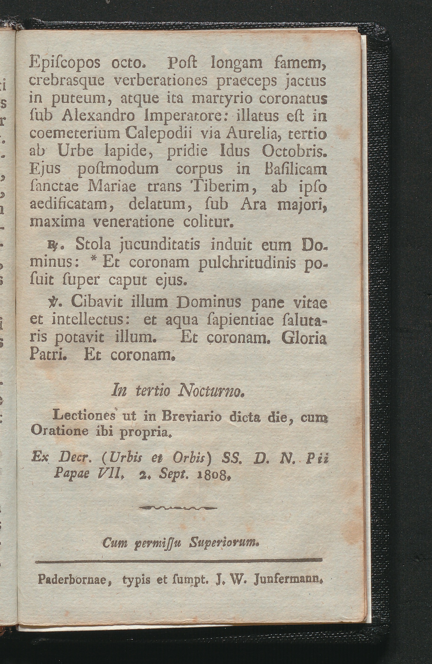 Die XIV. Octobris. In Festo Sancti Callisti Papae et Martyris : Duplex minus