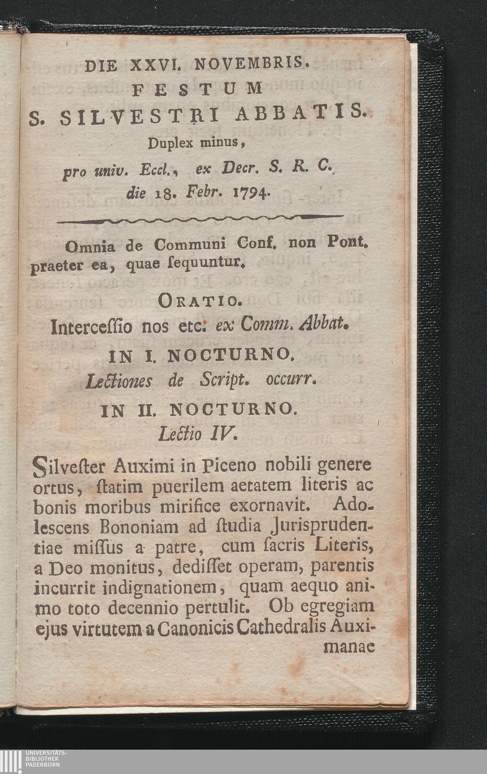 Die XXVI. Novembris. Festum S. Silvestri Abbatis. Duplex minus, pro univ. Eccl.,[...]