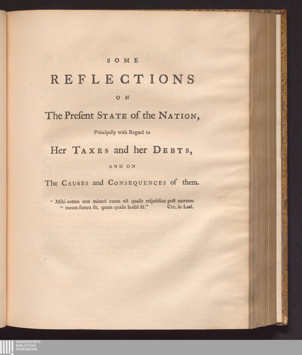 Some reflections on the present state of nation, principally with regard to her taxes and her debts, and on the causes and consequences of them.
