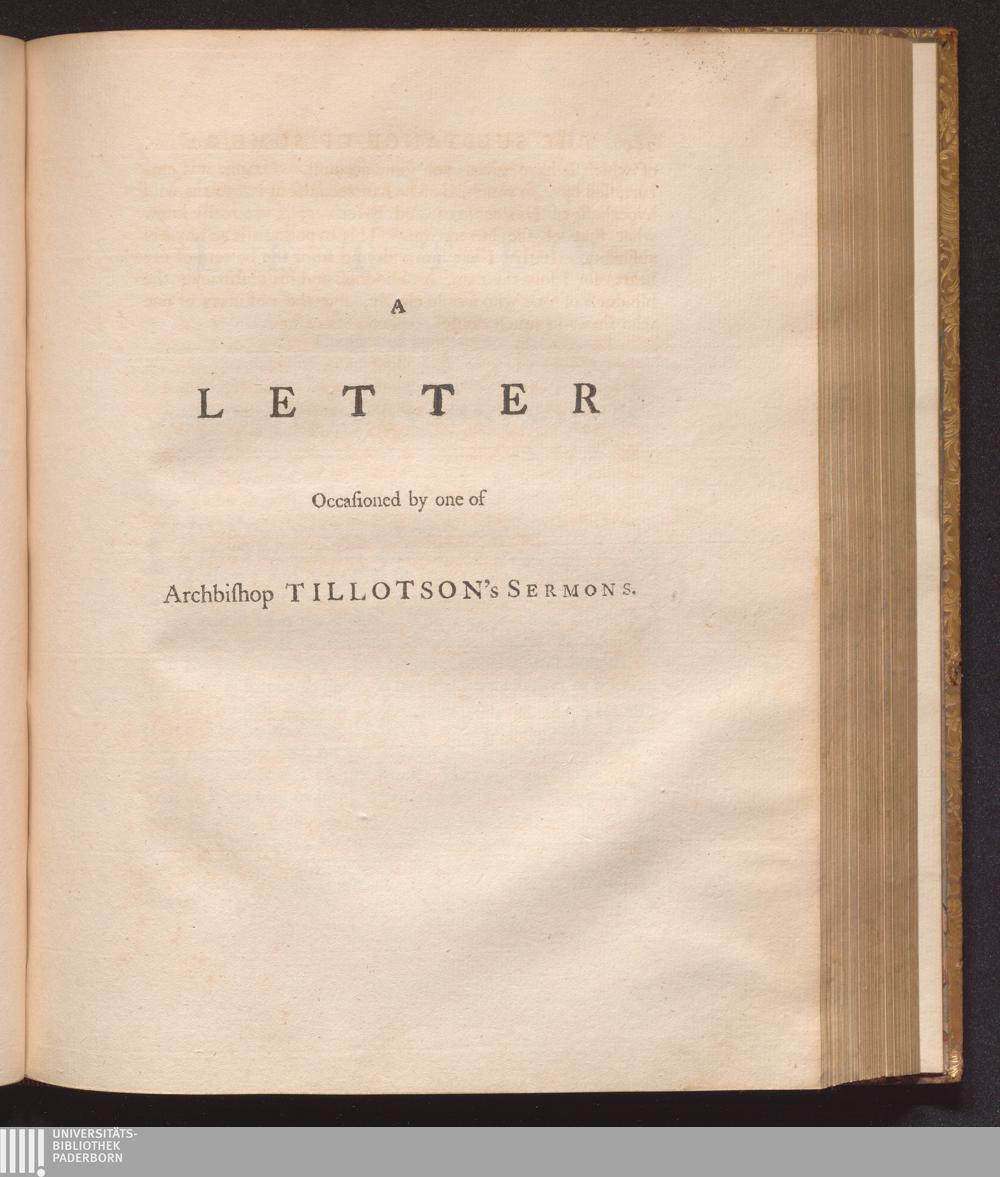 A letter occasioned by one of archibishop Tillotson's sermons.