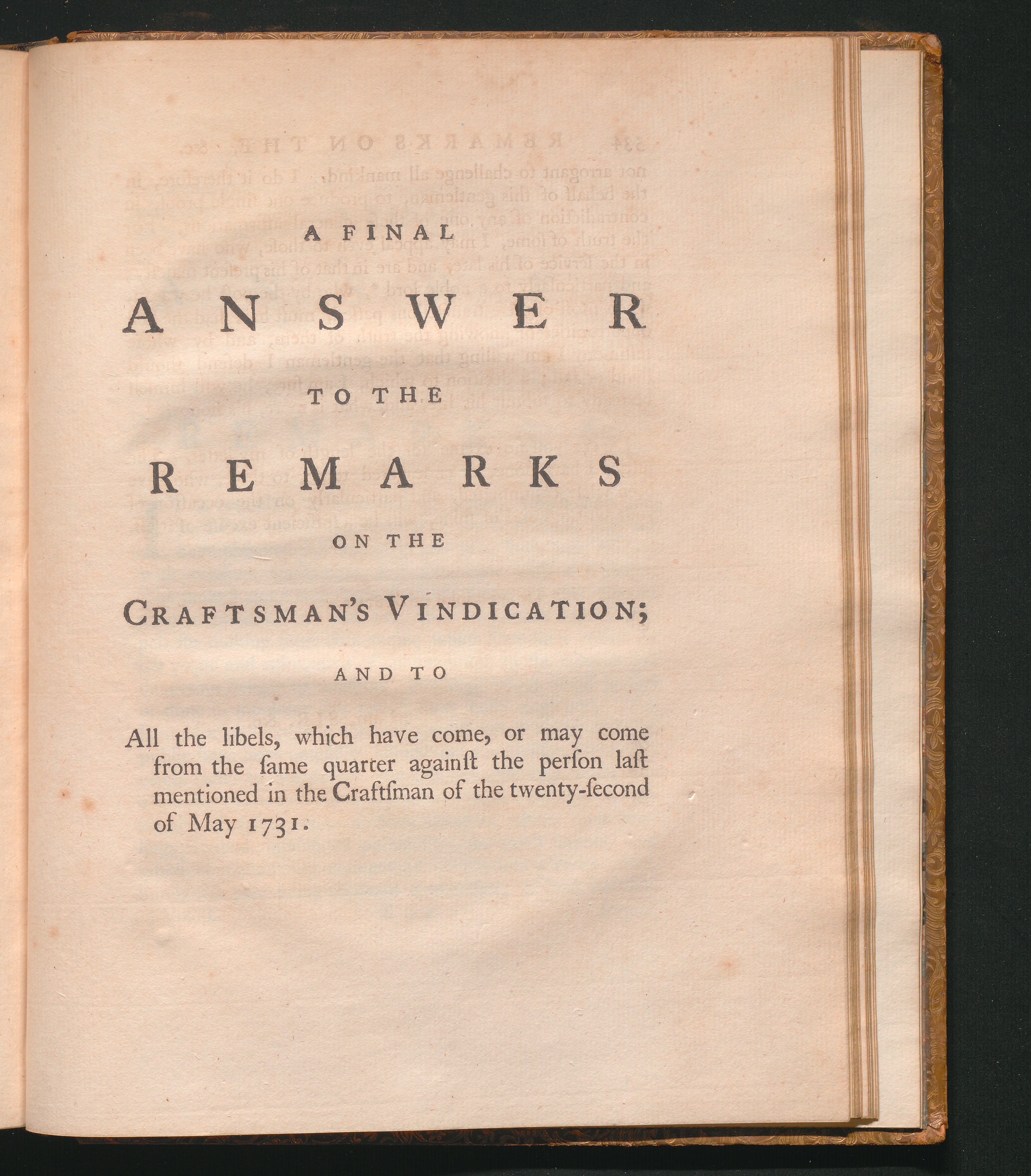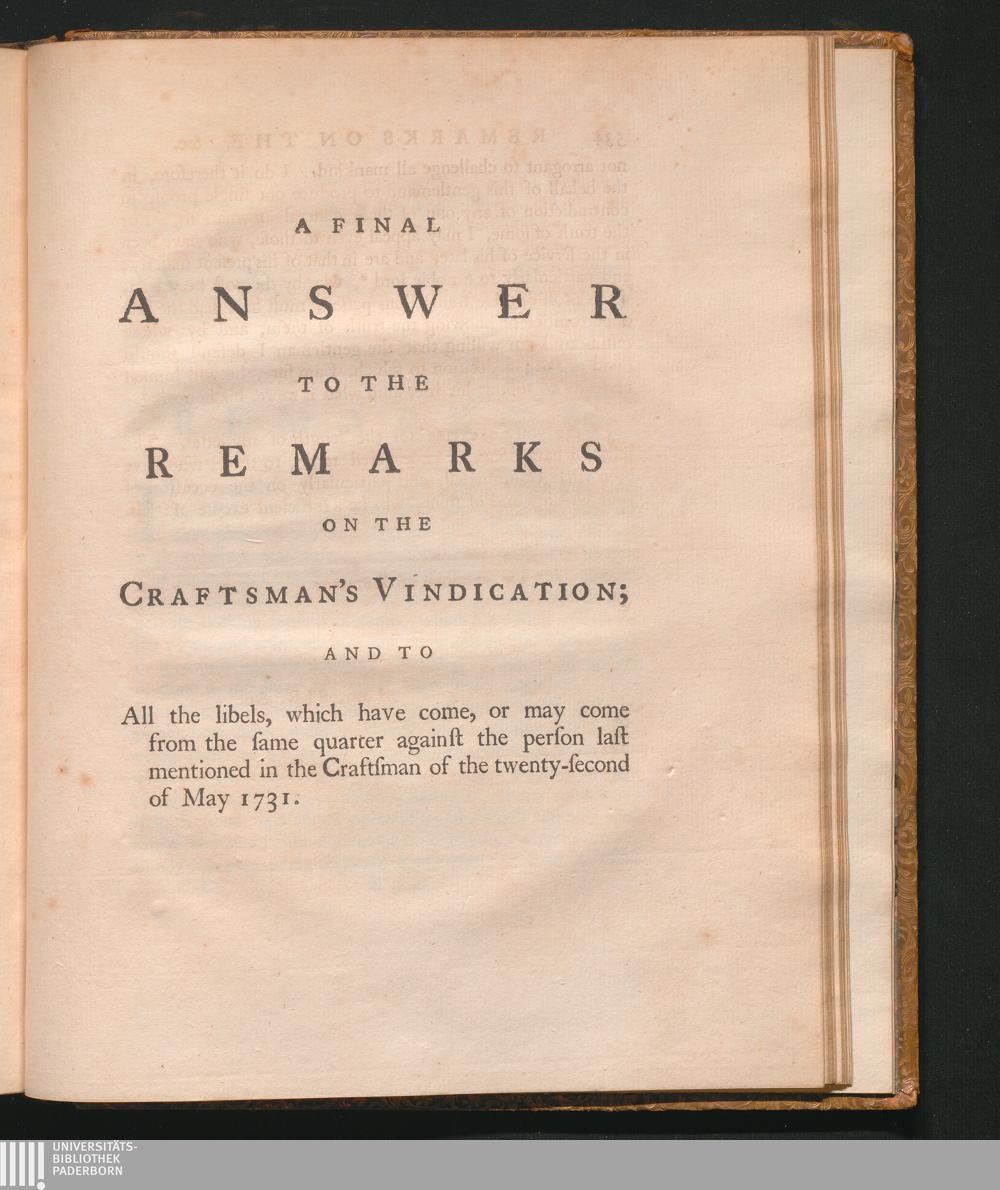 [A Final Answer to the Remarks on the Craftsman's Vindication; and to All the libels, which have come, or may come from the same quarter against the person last mentioned in the Craftsman of the twenty-second of May 1731.]