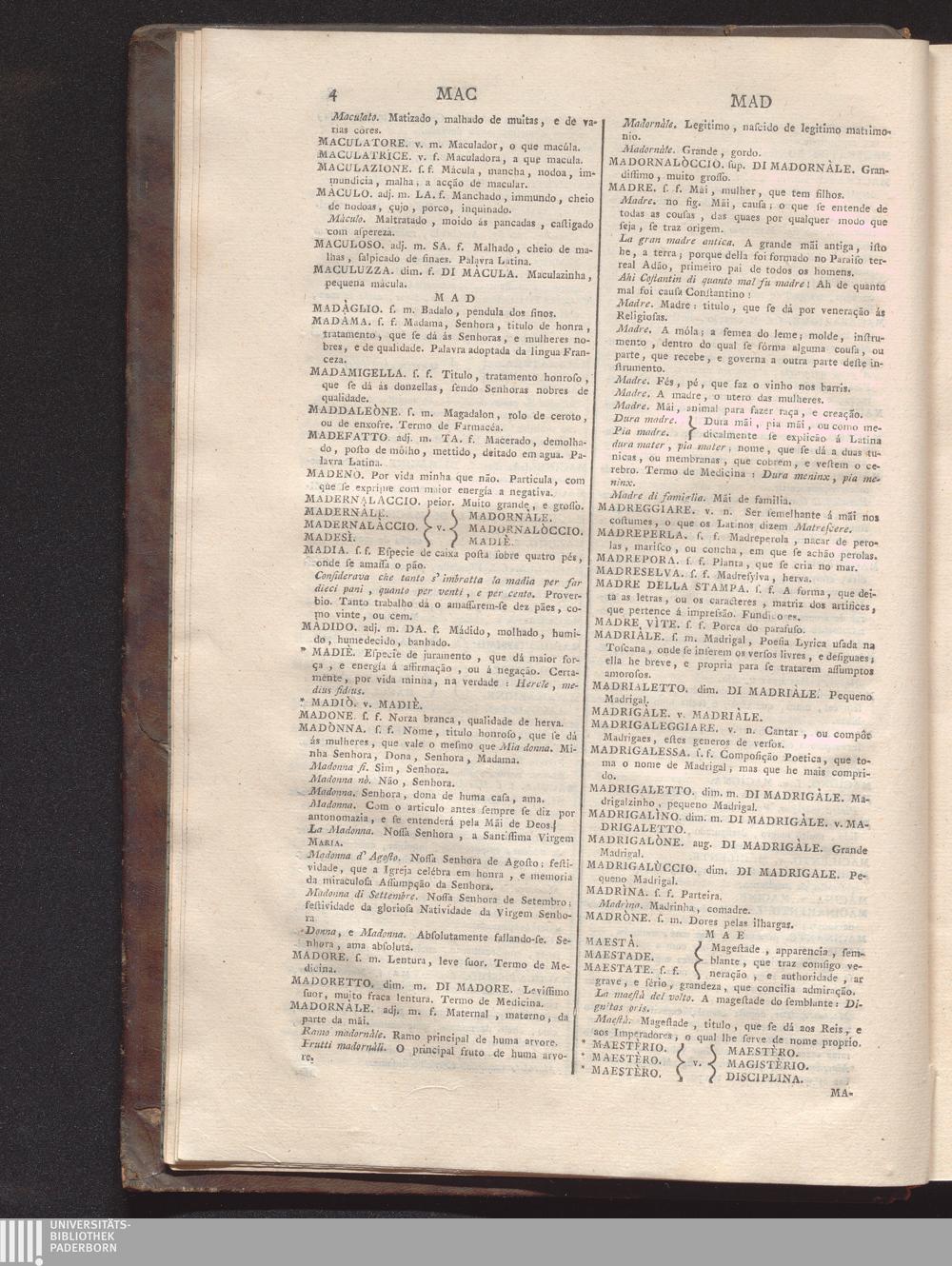 Parte Prima, Tomo Secondo (1774) M - Z