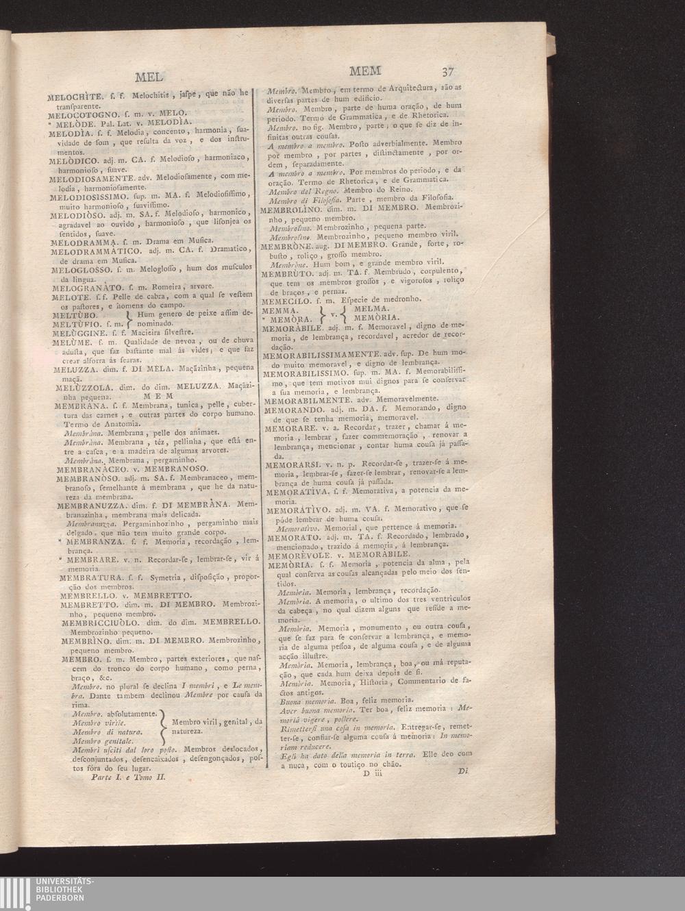 Parte Prima, Tomo Secondo (1774) M - Z