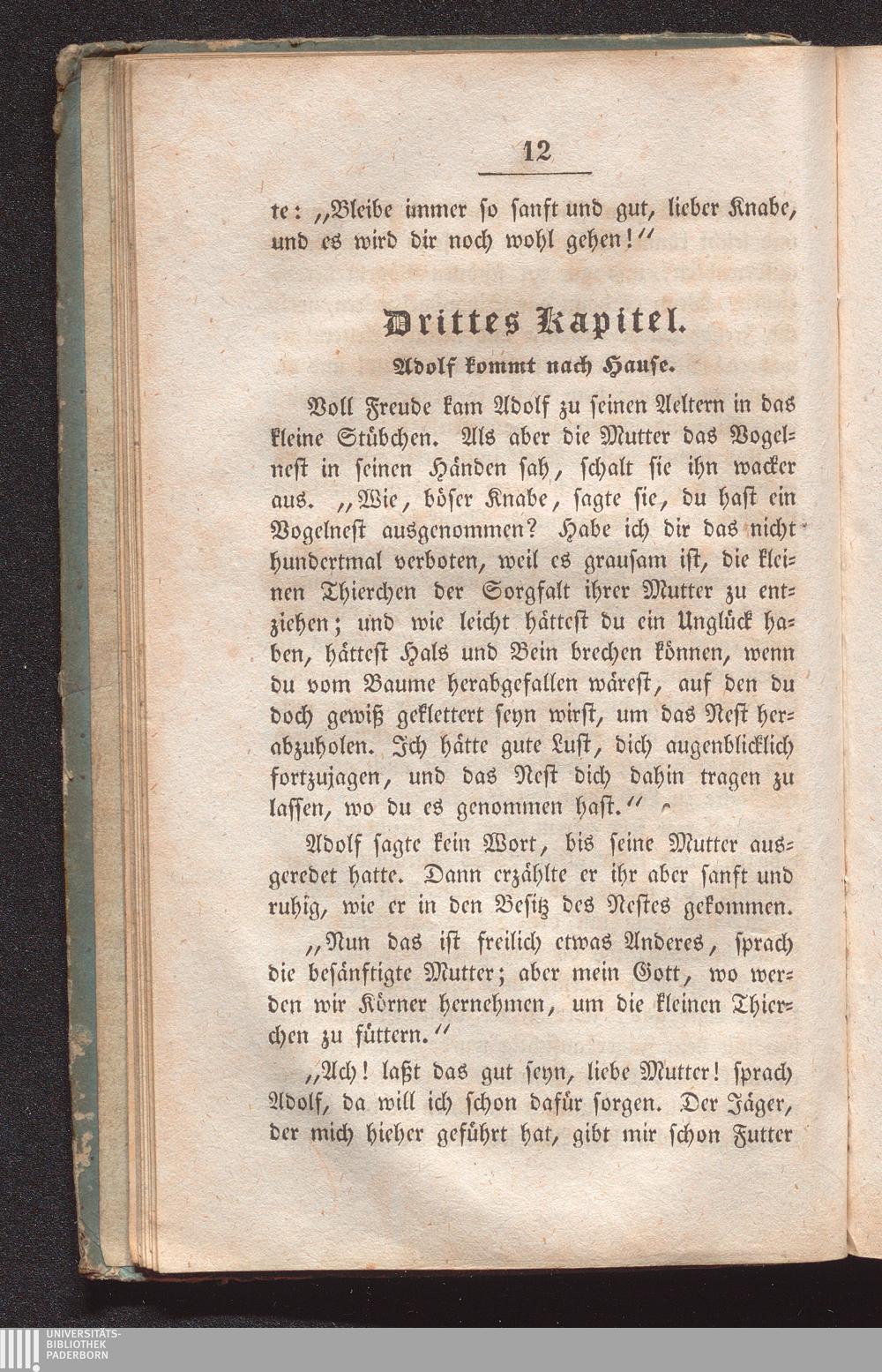 Der sanfte Adolf und der zornige Wilhelm : Eine lehrreiche Erzählung für Aeltern und Kinder ; als Gegenstück zu Christoph Schmid's Erzählung: "Der gute Fridolin und der böse Diedrich" ; mit einem Titelkupfer / Herausgegeben vom Verfasser der Theodolinde. [Ill.: J. Rössert]