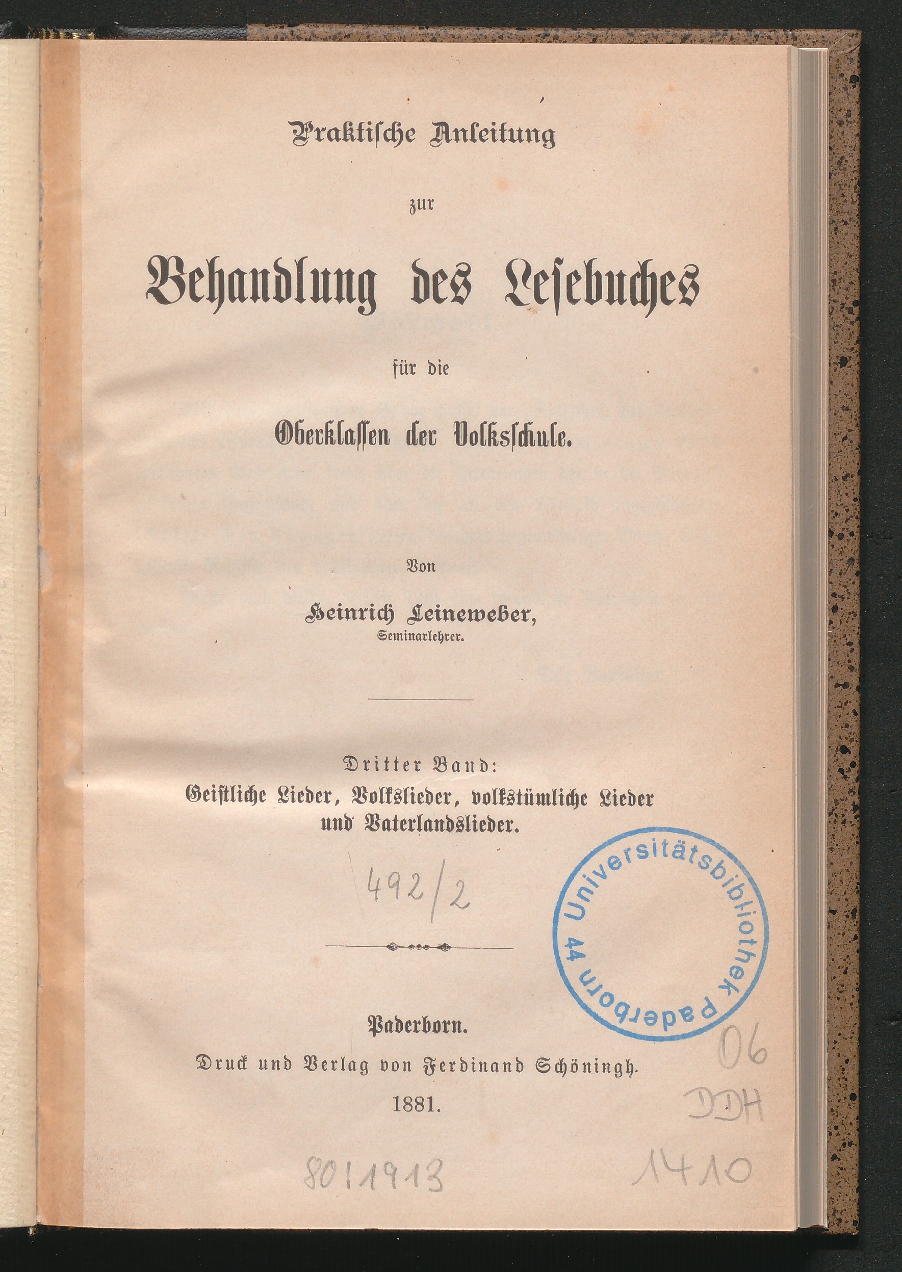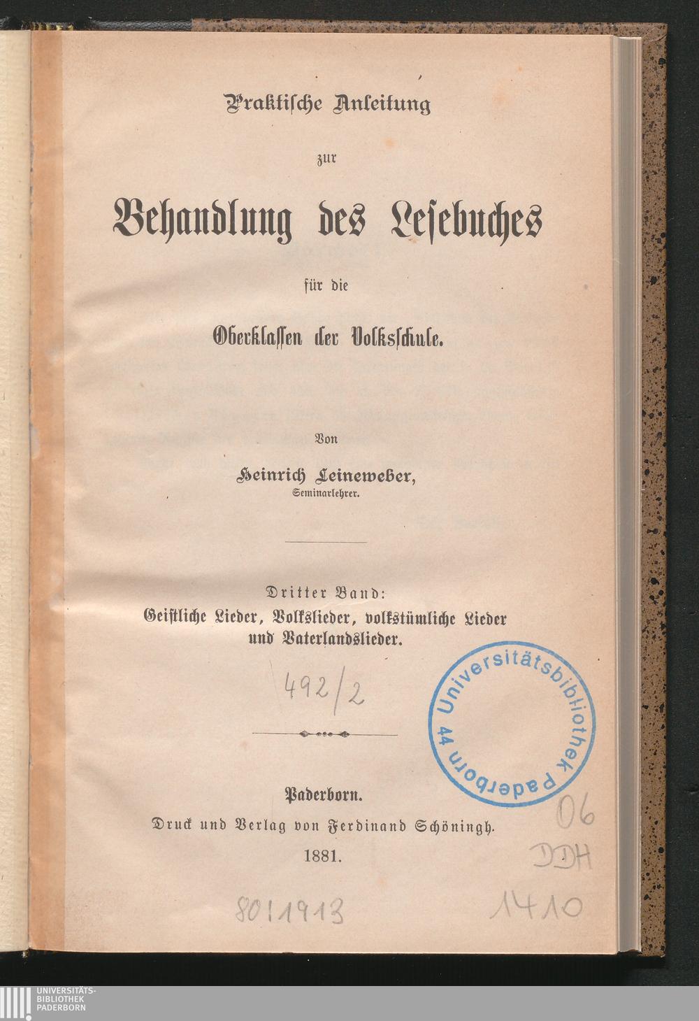 3 (1881) Geistliche Lieder, Volkslieder, volkstümliche Lieder und Vaterlandslieder