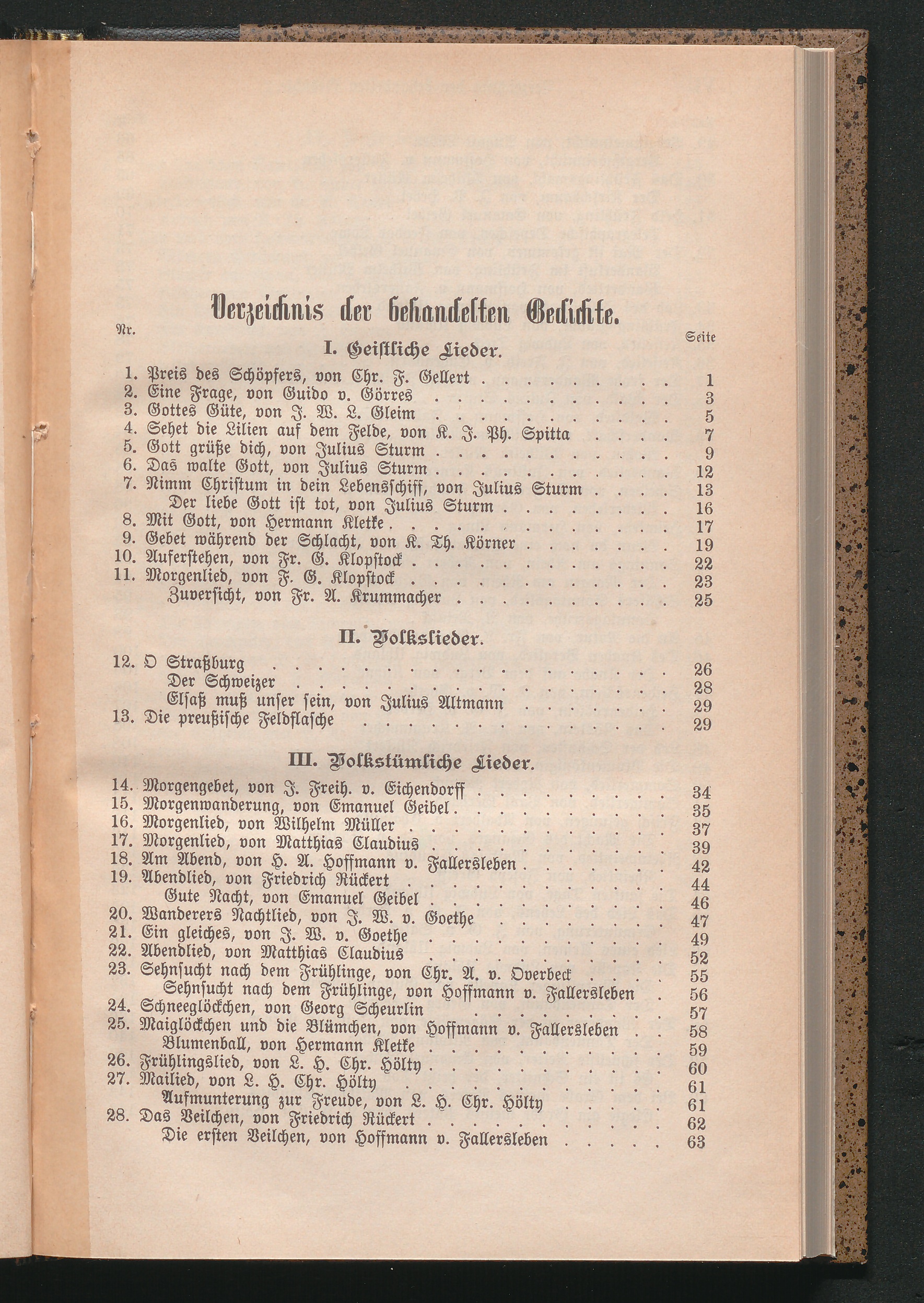 Geistliche Lieder, Volkslieder, volkstümliche Lieder und Vaterlandslieder