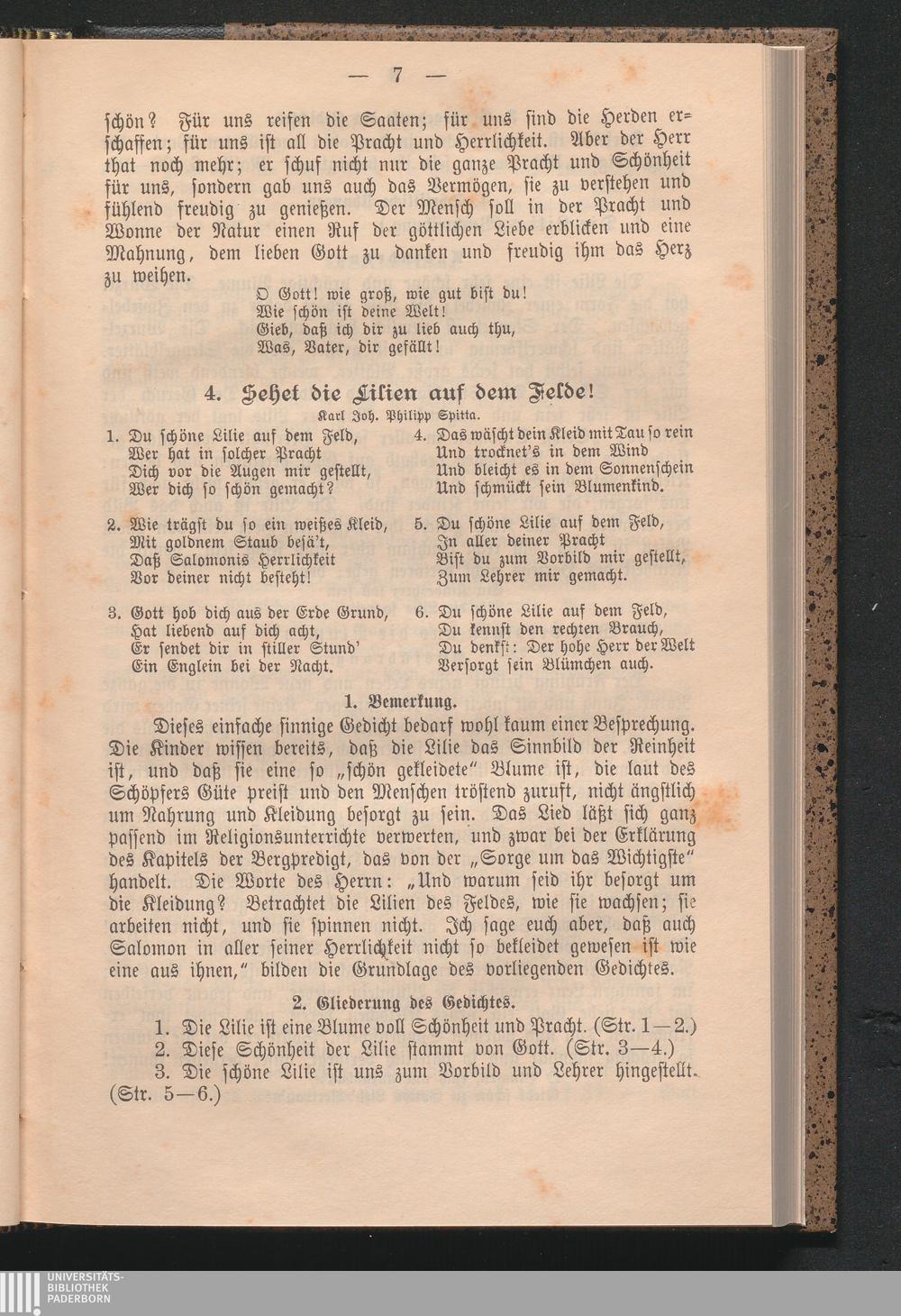 4. Sehet die Lilien auf dem Felde, von K. J. Ph. Spitta