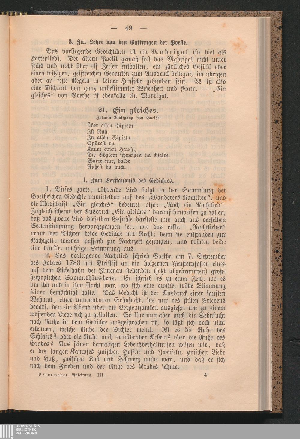 21. Ein gleiches, von J. W. v. Goethe