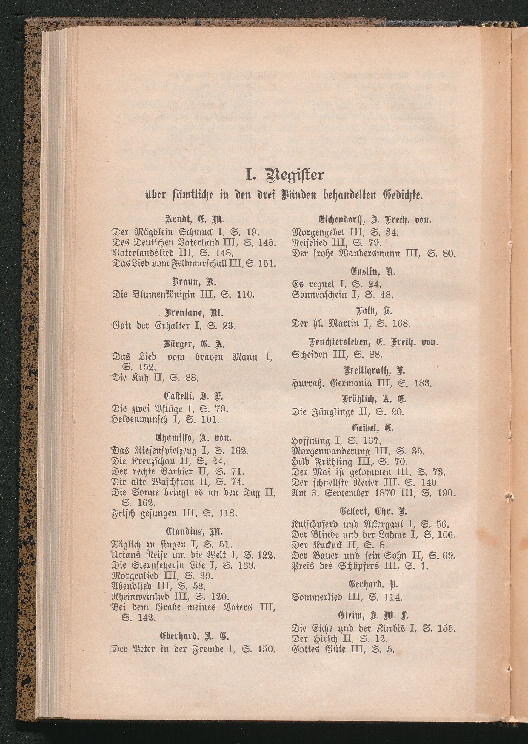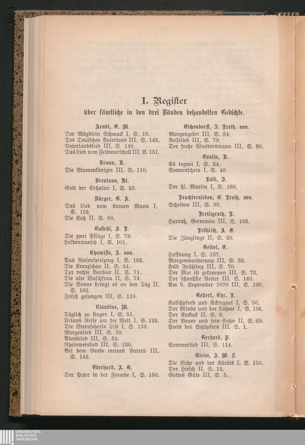 I. Register über sämtliche in den drei Bänden behandelten Gedichte.