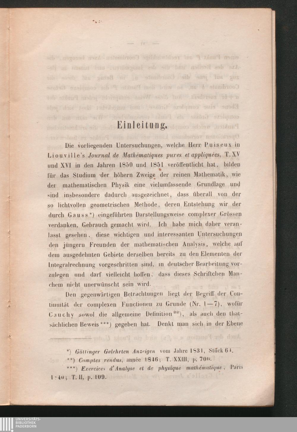 V. Puiseux's Untersuchungen über die algebraischen Functionen