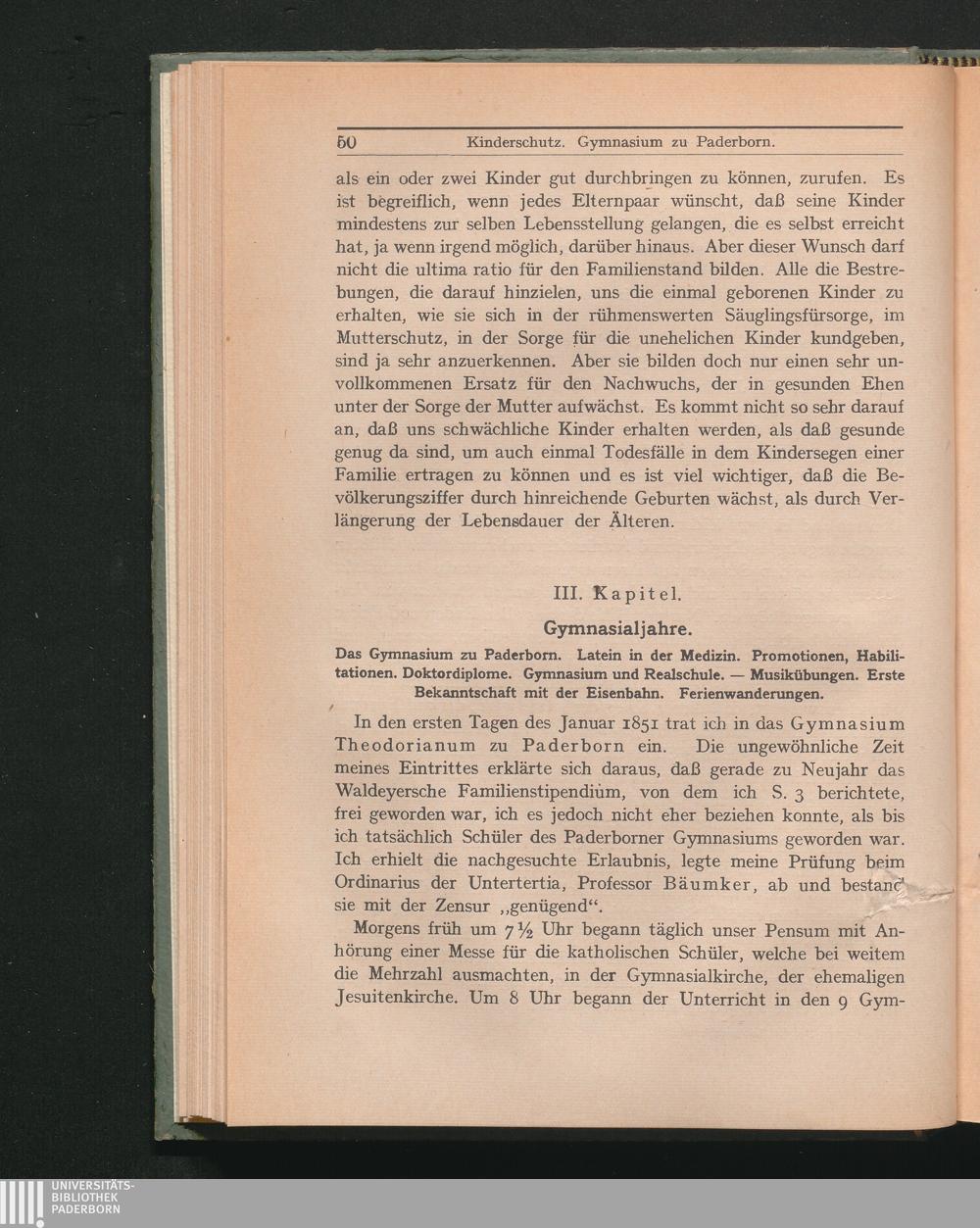 III. Gymnasialjahre. Das Gymnasium zu Paderborn. - Das Latein in der Medizin. - Promotionen.[...]