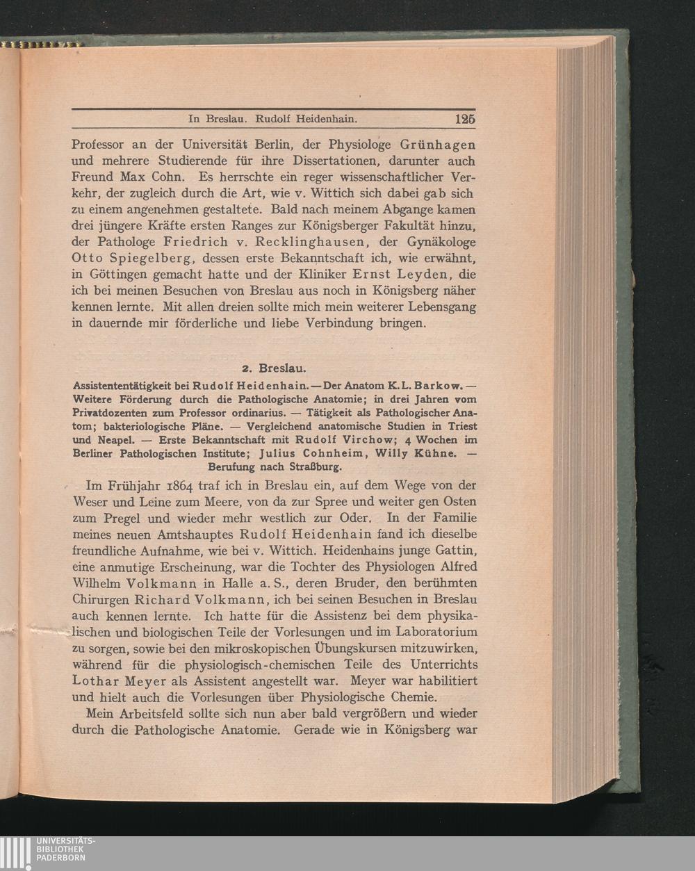2. Breslau. Assistententätigkeit bei Rudolf Heidenhain. - Der Anatom K. L. Barkow.[...]