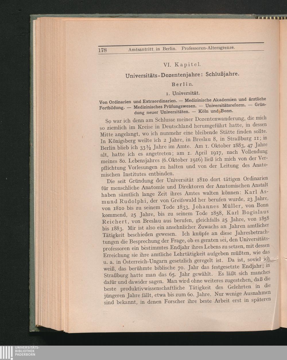 VI. Universitäts - Dozentenjahre; Schlußjahre. - Berlin. 1. Universität: Dozenten,[...]