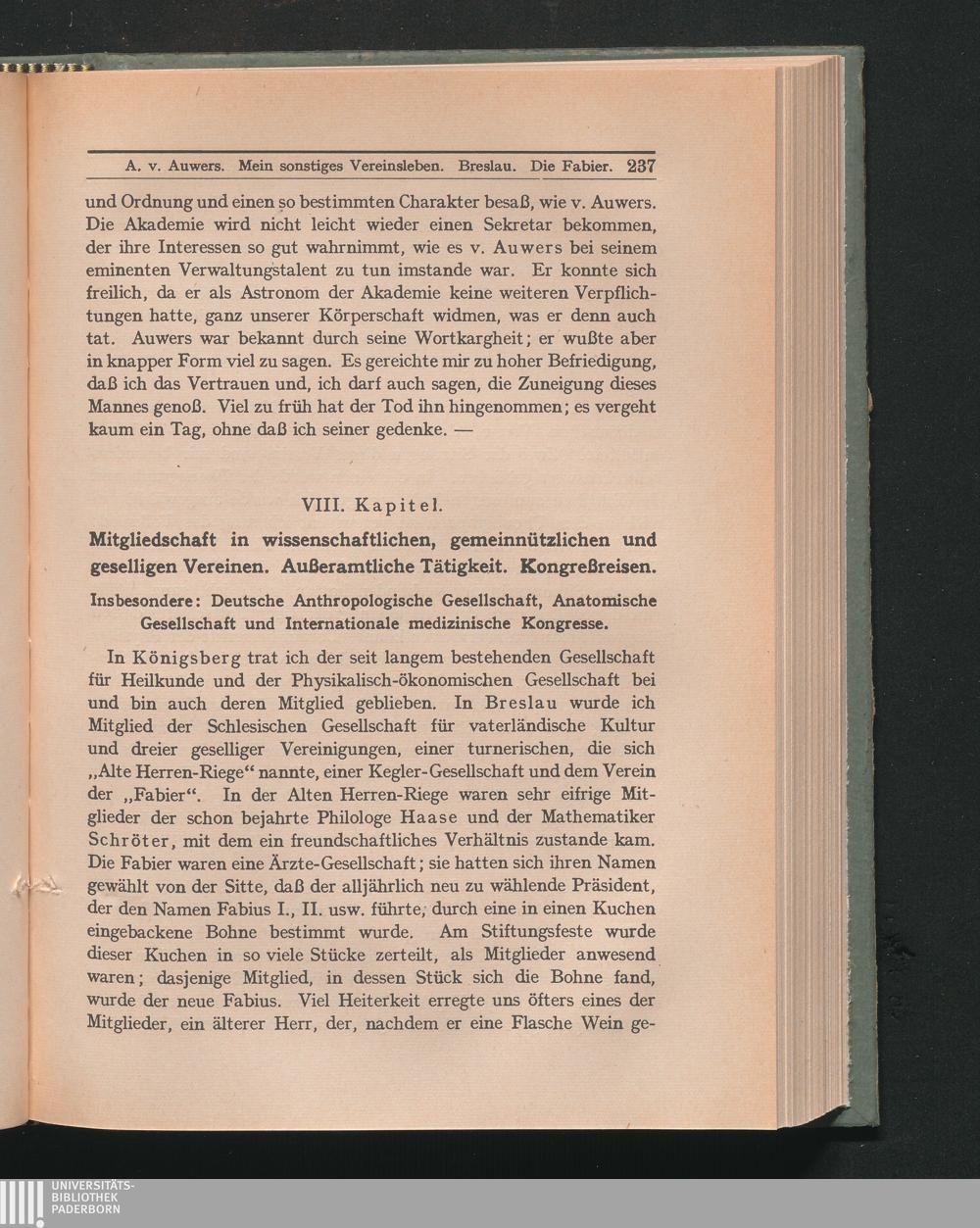 VIII. Mitgliedschaft in wissenschaftlichen, geselligen und gemeinnützigen Vereinen.[...]