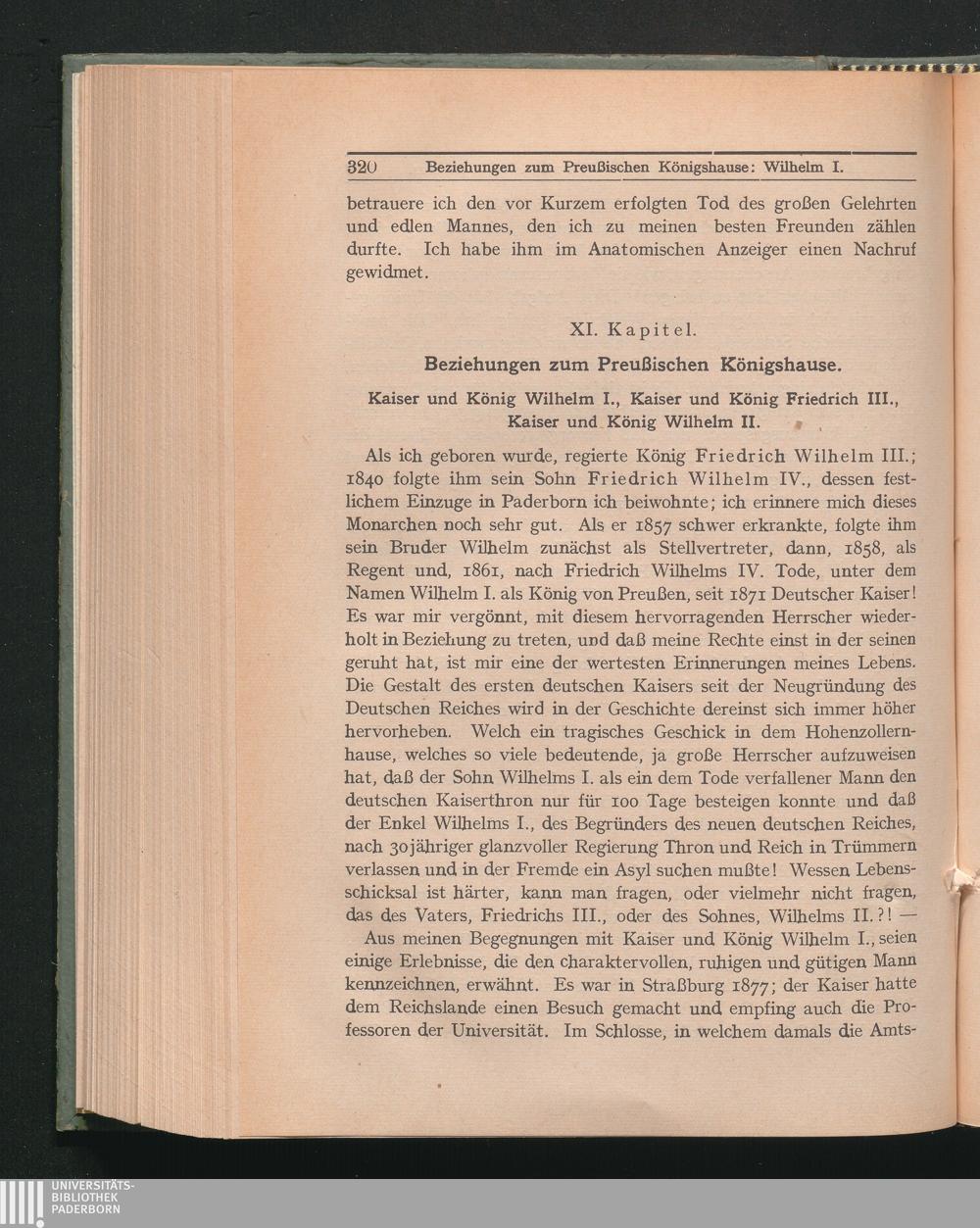 XI. Beziehungen zum Preußischen Königshause. Kaiser und König Wilhelm I. - Kaiser[...]