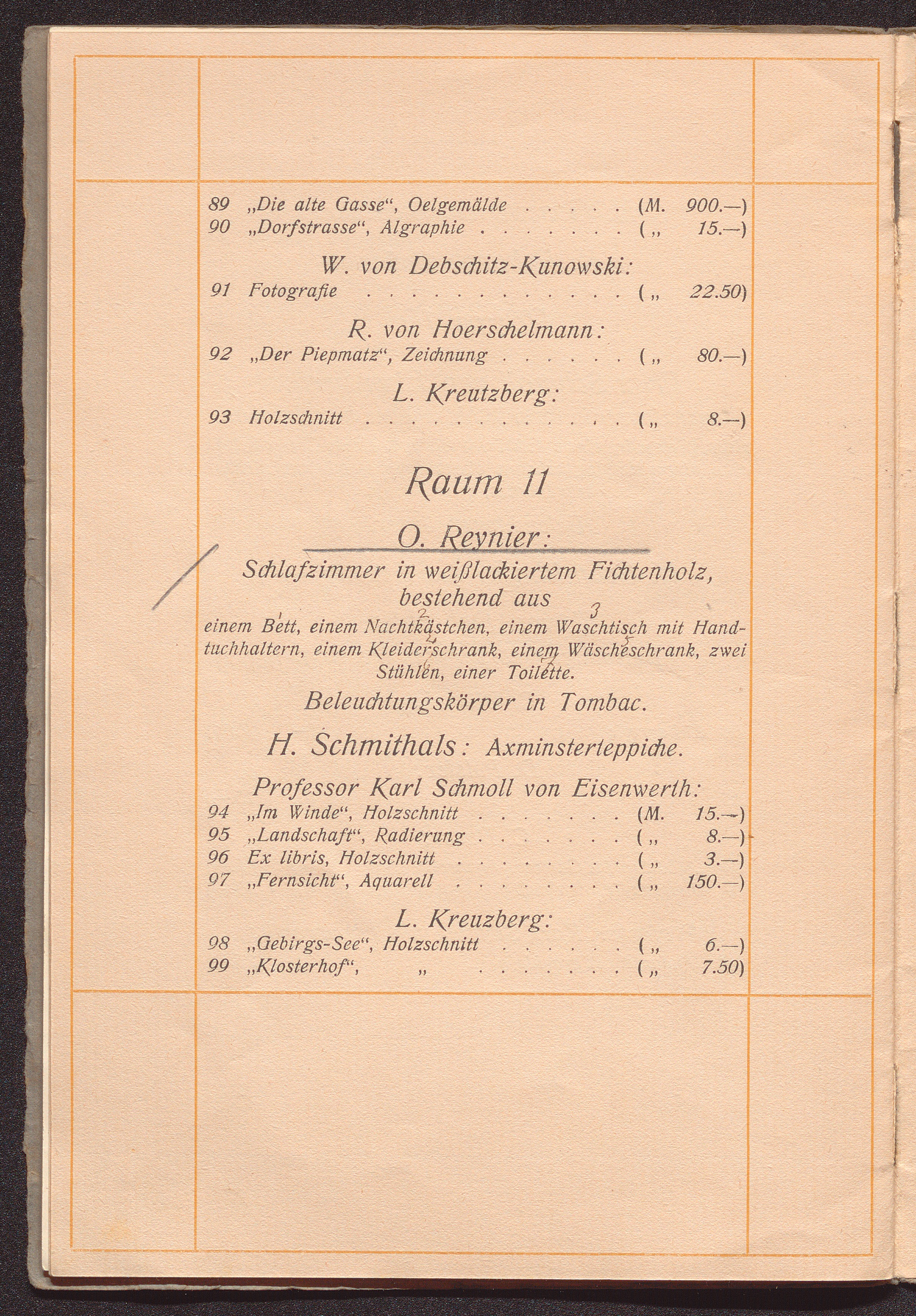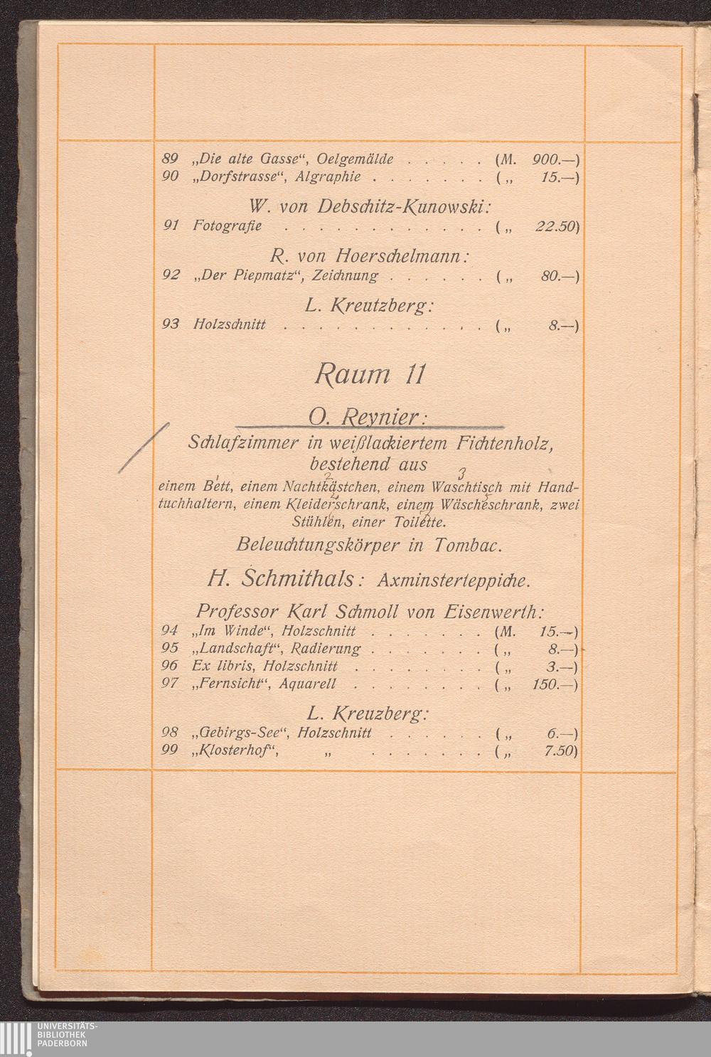 Ausstellungskatalog der "Ateliers u. Werkstätten für angewandte Kunst, W. v. Debschitz u. H. Lochner" / Ständige künstlerische Mitarbeiter: Wilhelm von Debschitz, Hermann Lochner, Fritz Schmoll von Eisenwerth, Professor Karl Schmoll von Eisenwerth [und weitere]