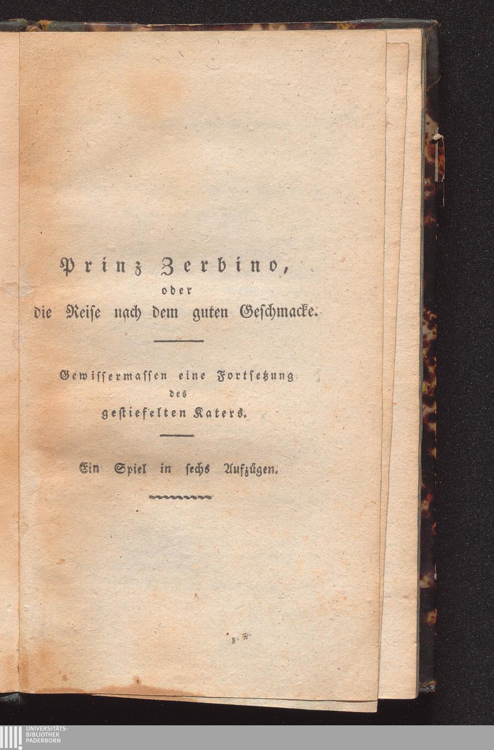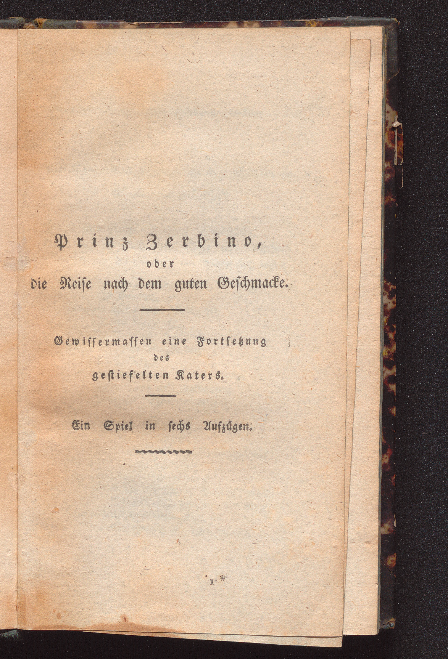 Prinz Zerbino, oder die Reise nach dem guten Geschmacke. Gewisssermassen eine Fortsetzung des gestiefelten Katers. Ein Spiel in sechs Aufzügen.