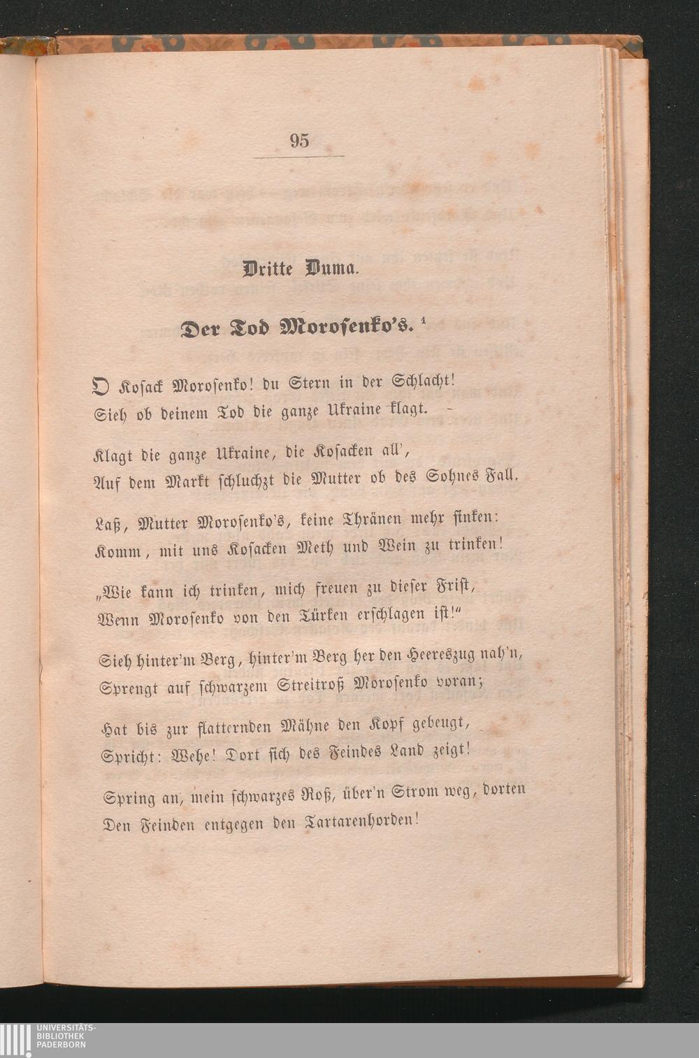 Die poetische Ukraine : Eine Sammlung kleinrussischer Volkslieder / Ins Deutsche übertragen von Friedrich Bodenstedt