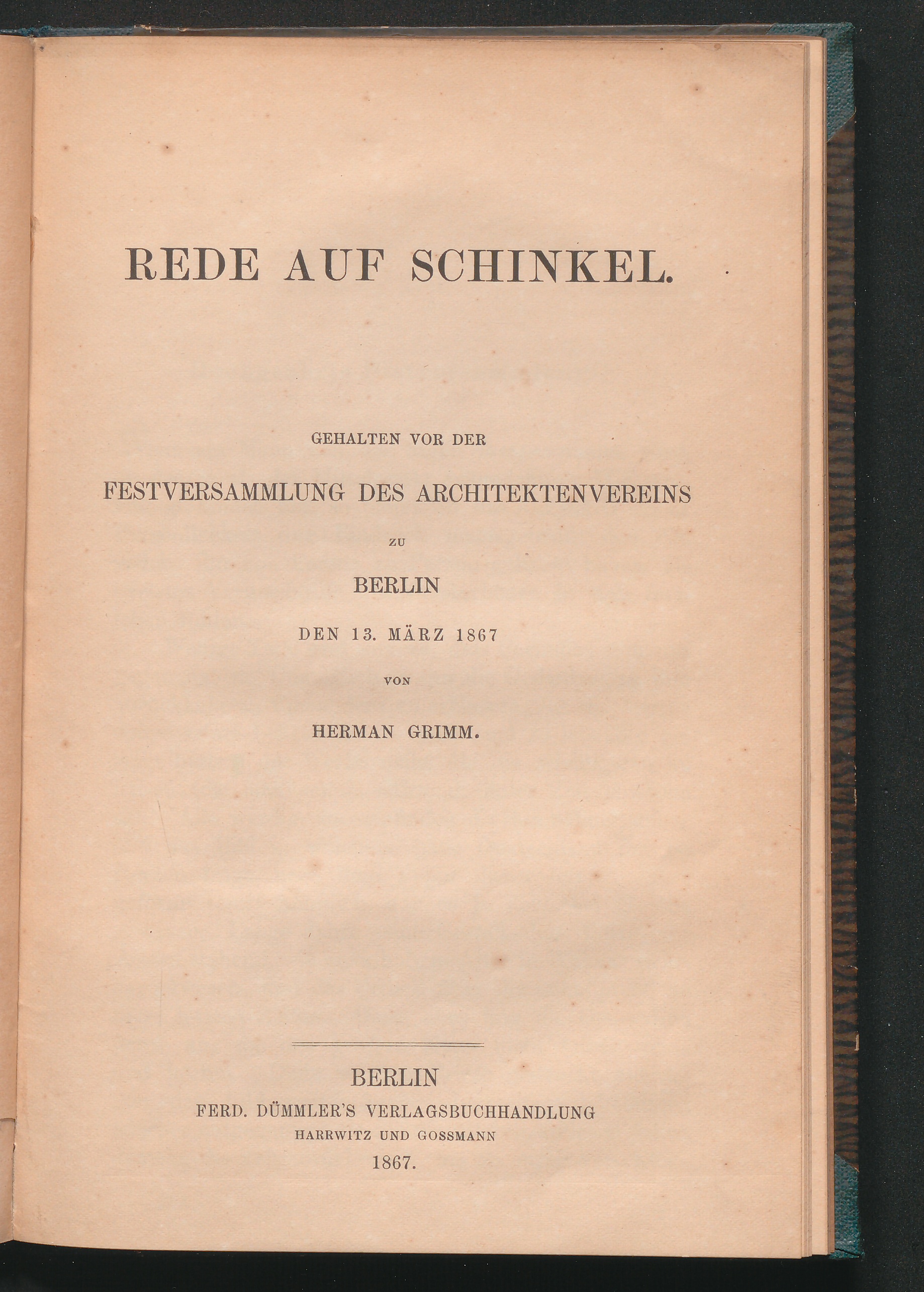 Rede auf Schinkel : gehalten vor der Festversammlung des Architektenvereins zu Berlin, den 13. März 1867 / von Herman Grimm