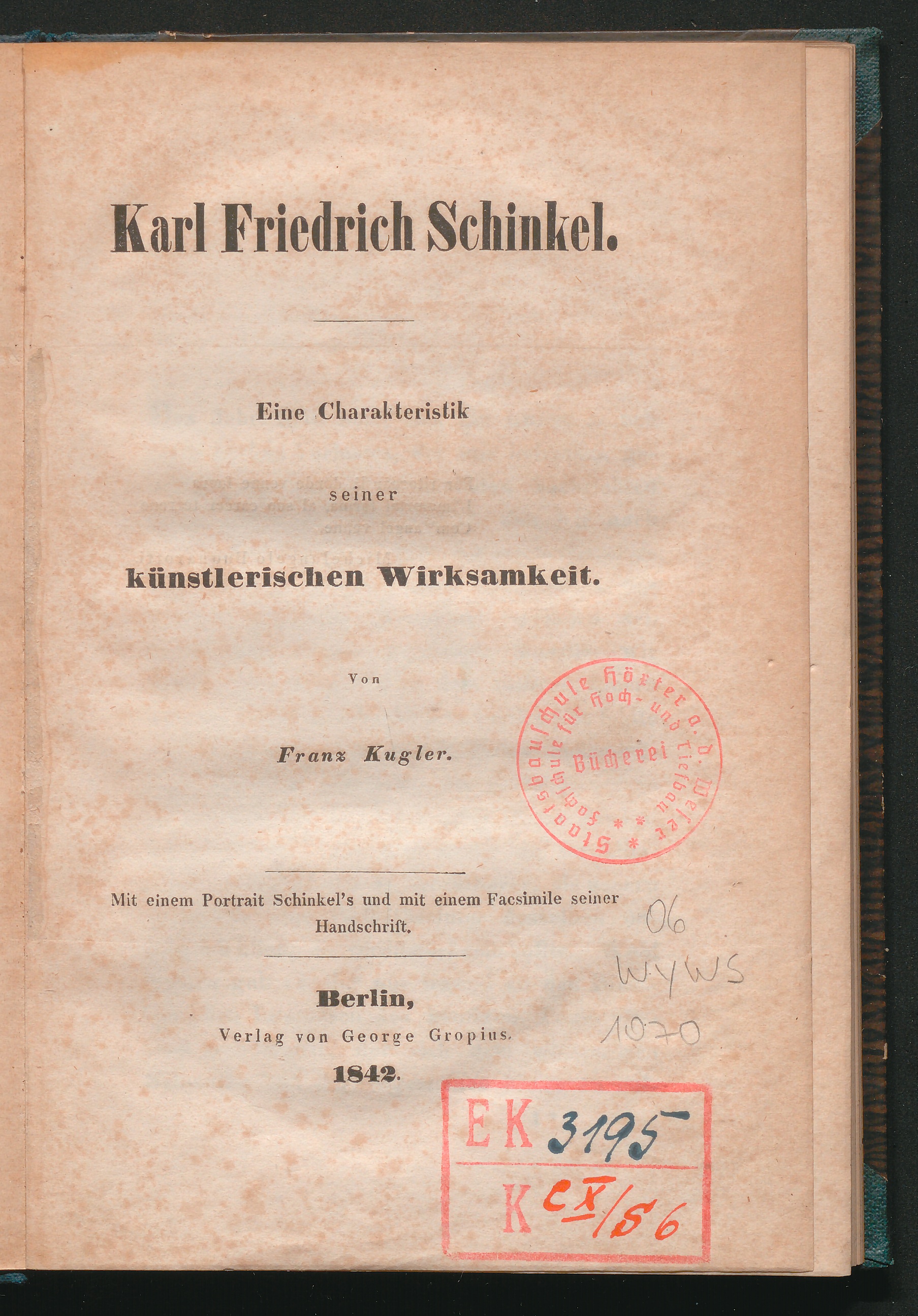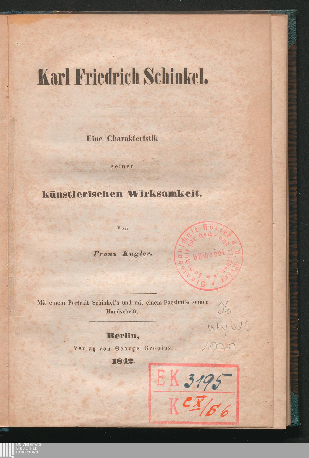 Karl Friedrich Schinkel : Eine Charakteristik seiner künstlerischen Wirksamkeit / Von Franz Kugler