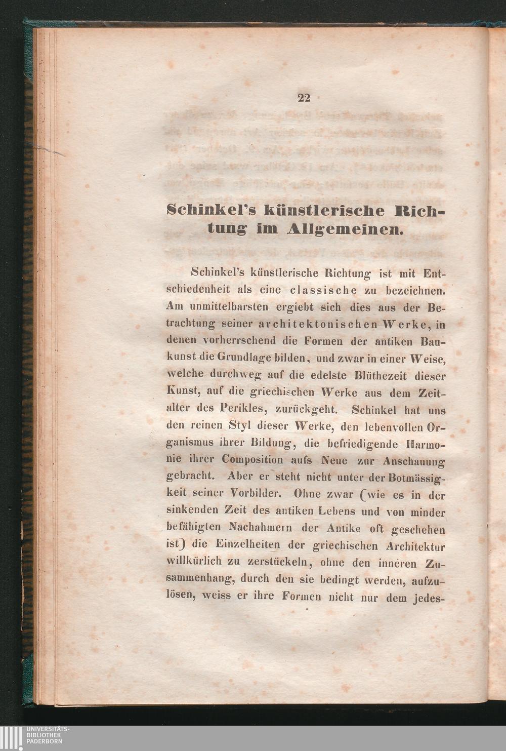 Schinkel’s künstlerische Richtung im Allgemeinen.