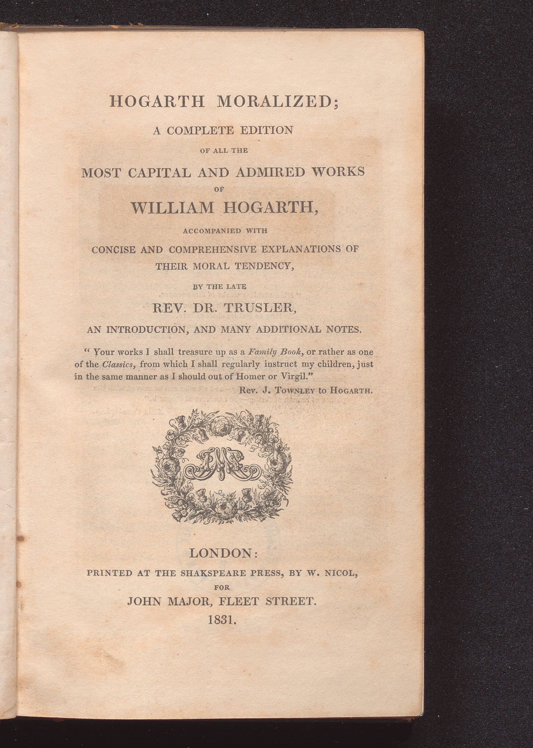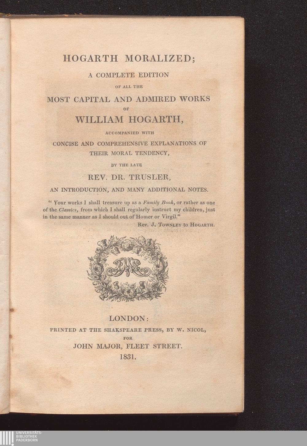 Hogarth moralized : a complete edition of all the most capital and admired works of William Hogarth, accompanied with concise and comprehensive explanations of their moral tendency... ; and many additional notes / by the late Rev. Dr. Trusler