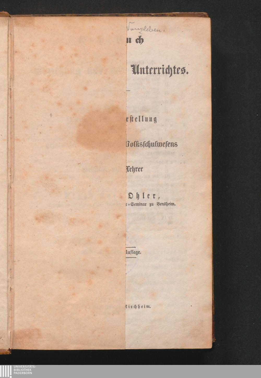 Lehrbuch der Erziehung und des Unterrichtes : eine systematische Darstellung des gesammten katholischen Volksschulwesens für Geistliche und Lehrer / von Aloys Karl Ohler