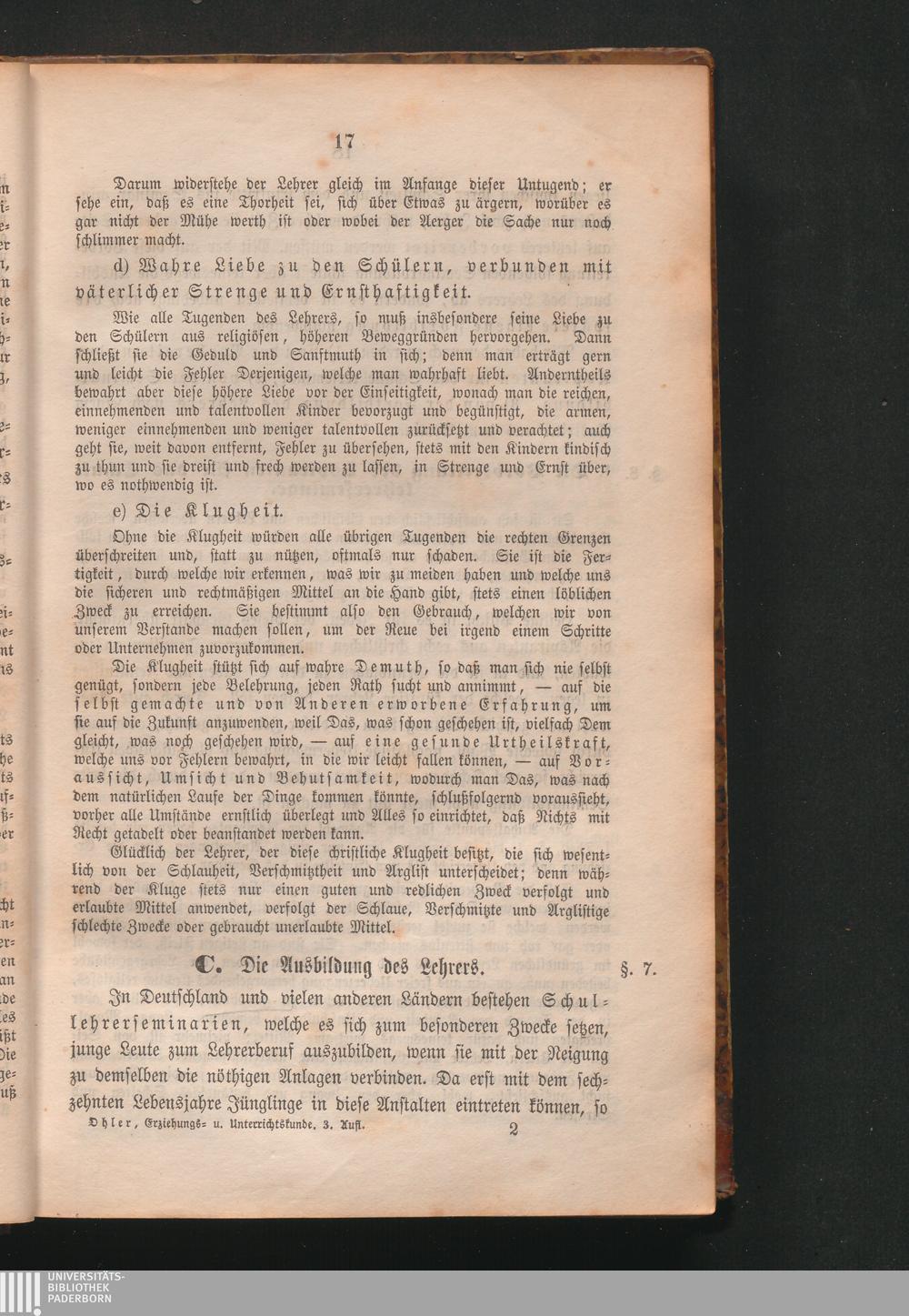 Lehrbuch der Erziehung und des Unterrichtes : eine systematische Darstellung des gesammten katholischen Volksschulwesens für Geistliche und Lehrer / von Aloys Karl Ohler