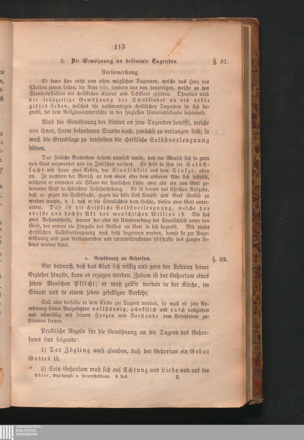 Lehrbuch der Erziehung und des Unterrichtes : eine systematische Darstellung des gesammten katholischen Volksschulwesens für Geistliche und Lehrer / von Aloys Karl Ohler