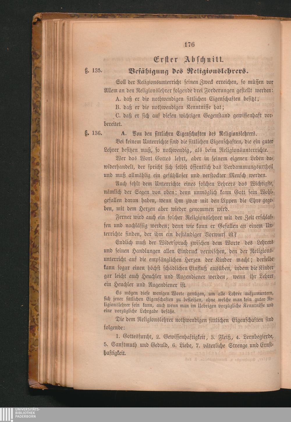 A. Von den sittlichen Eigenschaften des Religionslehrers