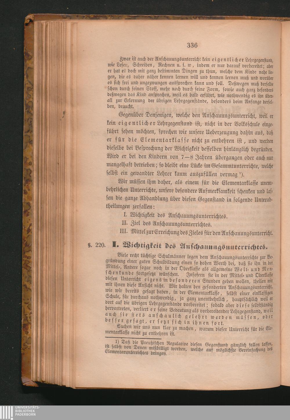 I. Wichtigkeit des Anschauungsunterrichtes