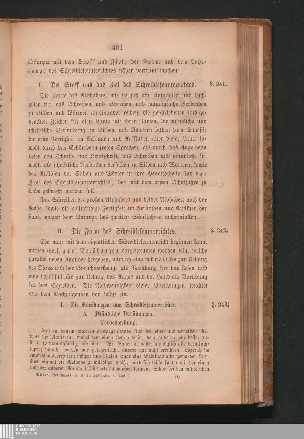 Lehrbuch der Erziehung und des Unterrichtes : eine systematische Darstellung des gesammten katholischen Volksschulwesens für Geistliche und Lehrer / von Aloys Karl Ohler