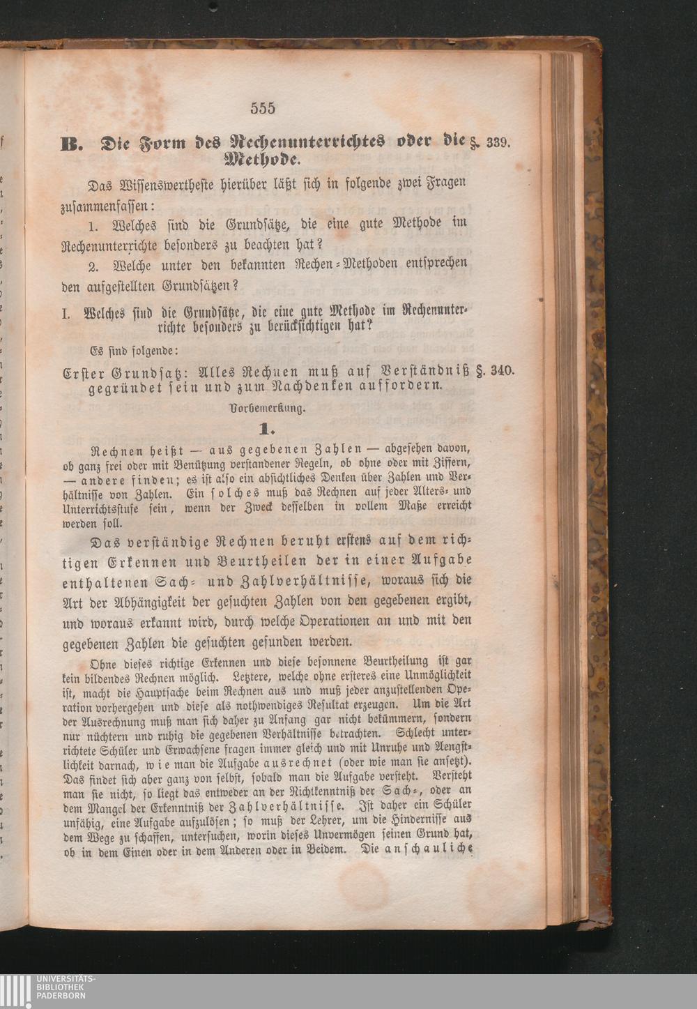 Erster Grundsatz: Alles Rechnen muß auf Verständniß gegründet sein und zum Nachdenken[...]