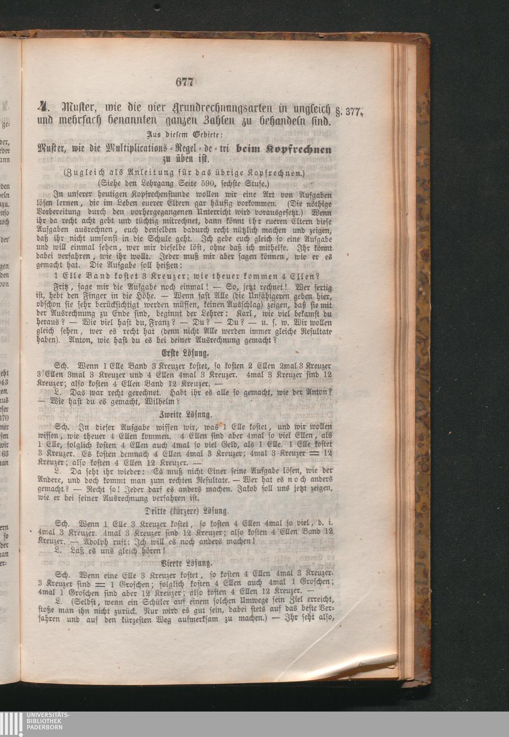 Muster, wie die Multiplications-Regel-de-tri beim Kopfrechnen zu üben ist. (§.37[...]